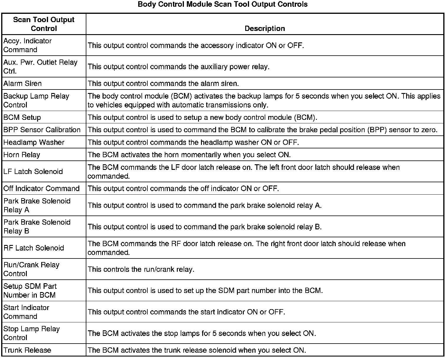 Body Control Module Scan Tool Information