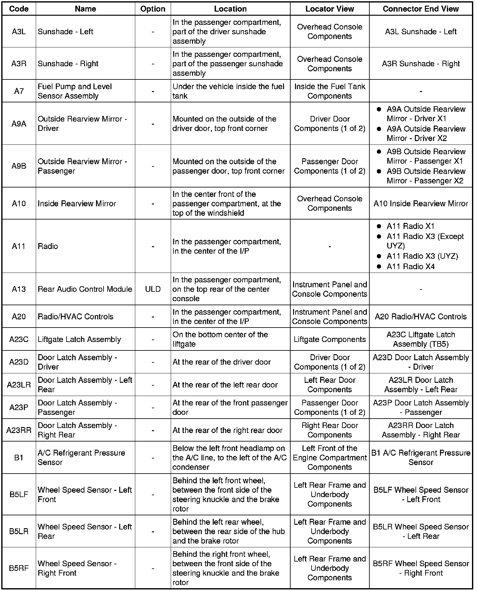 Master Electrical Component ListA3 - B5: