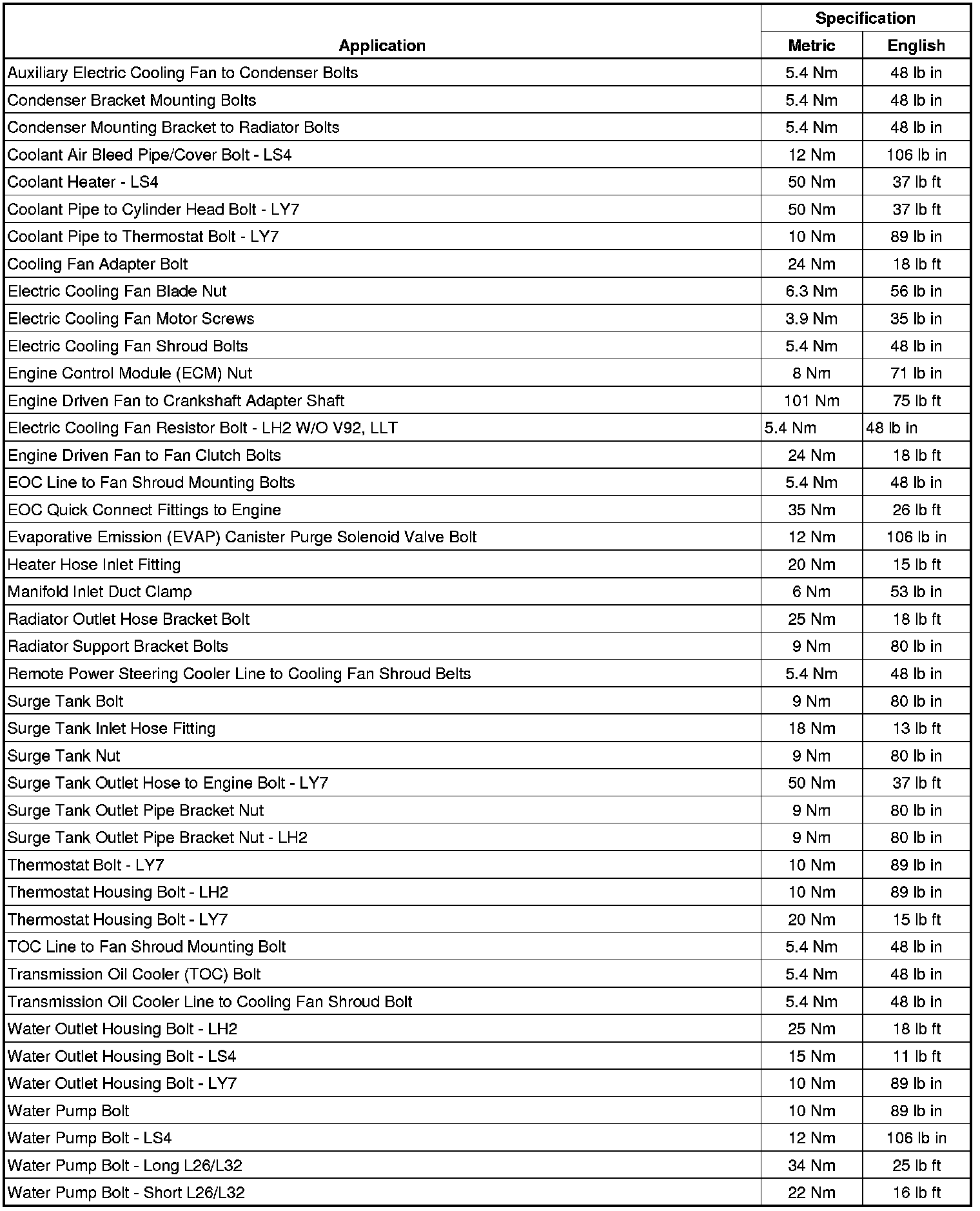 Fastener Tightening Specifications