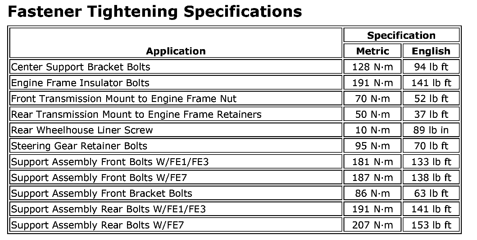 Fastener Tightening Specifications: