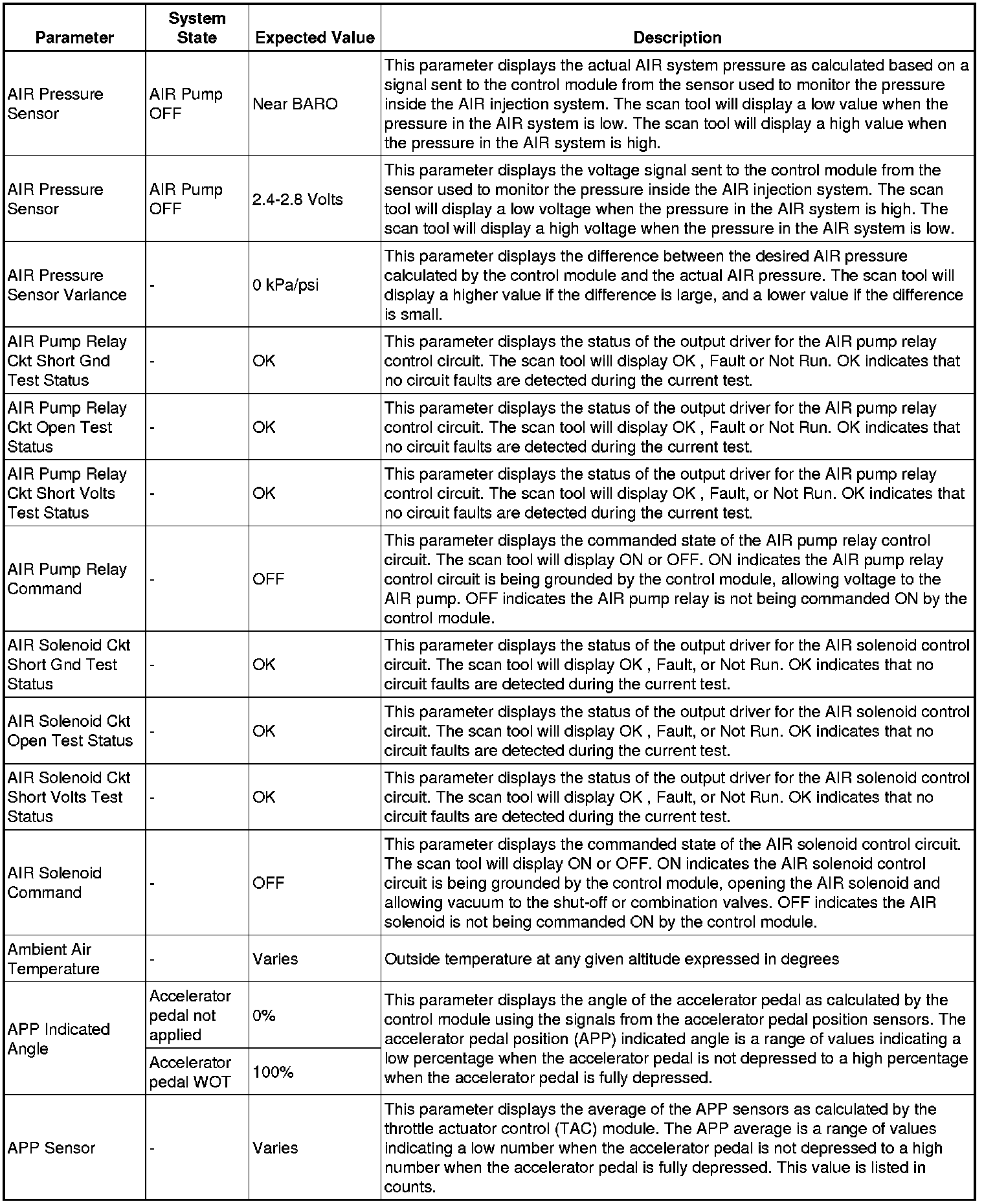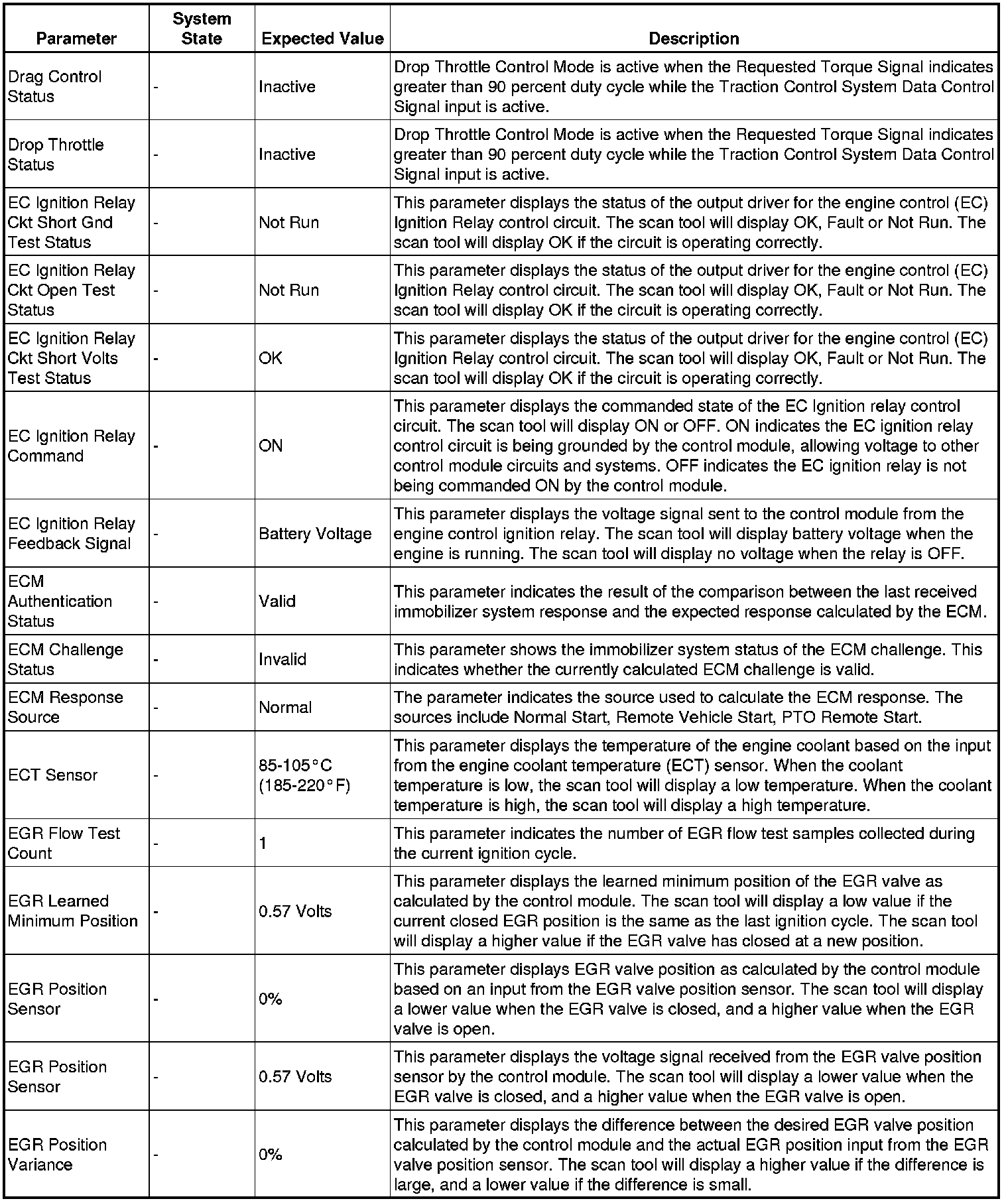 The Engine Control Module Scan Tool Data List contains all engine-related parameters that are available on the scan tool. The list is arranged in alphabetical order. A given parameter may appear in any one of the data lists, and in some cases may appear more than once, or in more than one data list in order to group certain related parameters together.