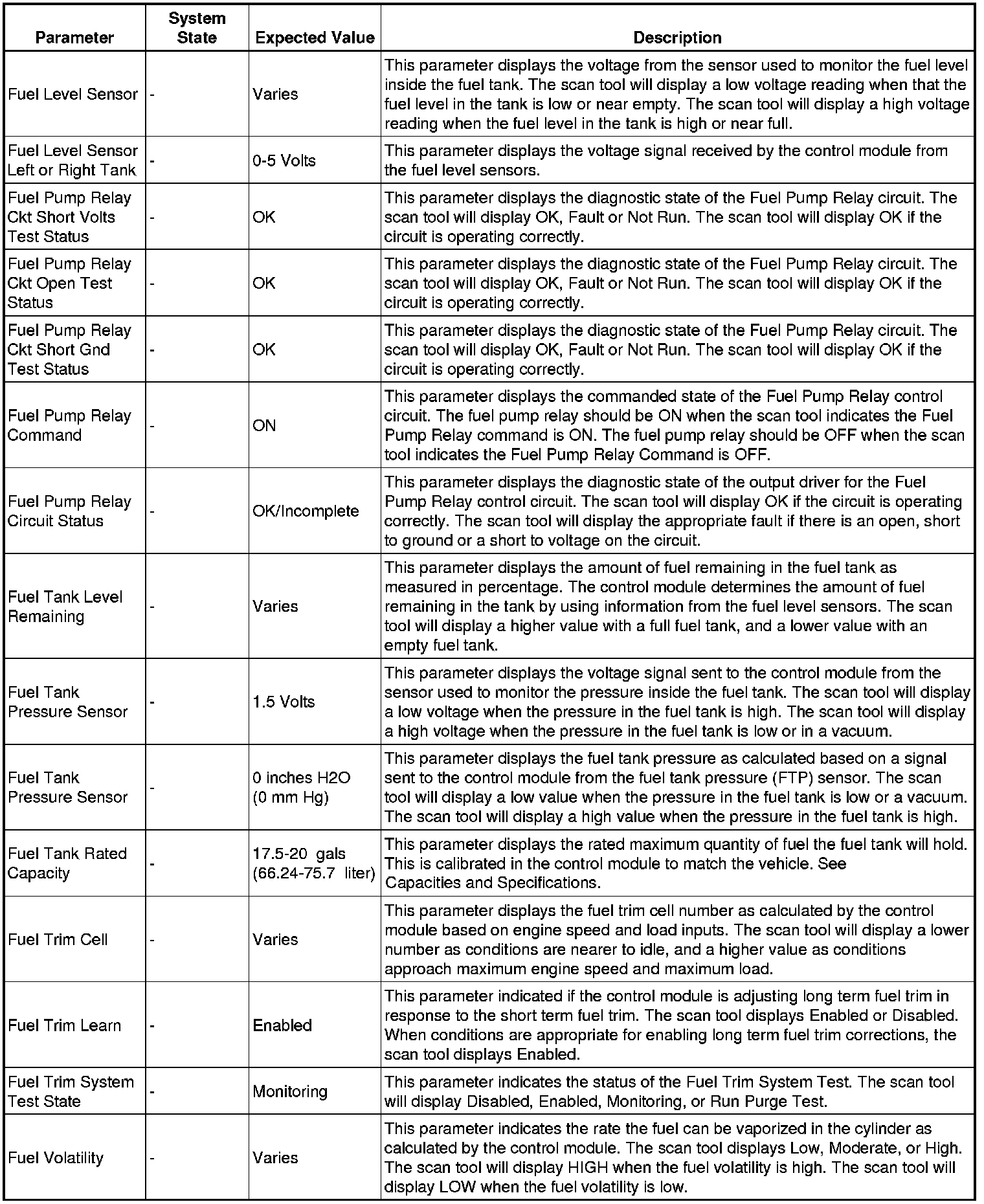 The scan tool values from a properly running engine may be used for comparison with the engine you are diagnosing. The engine scan tool data list represents values that would be seen on a normally running engine.