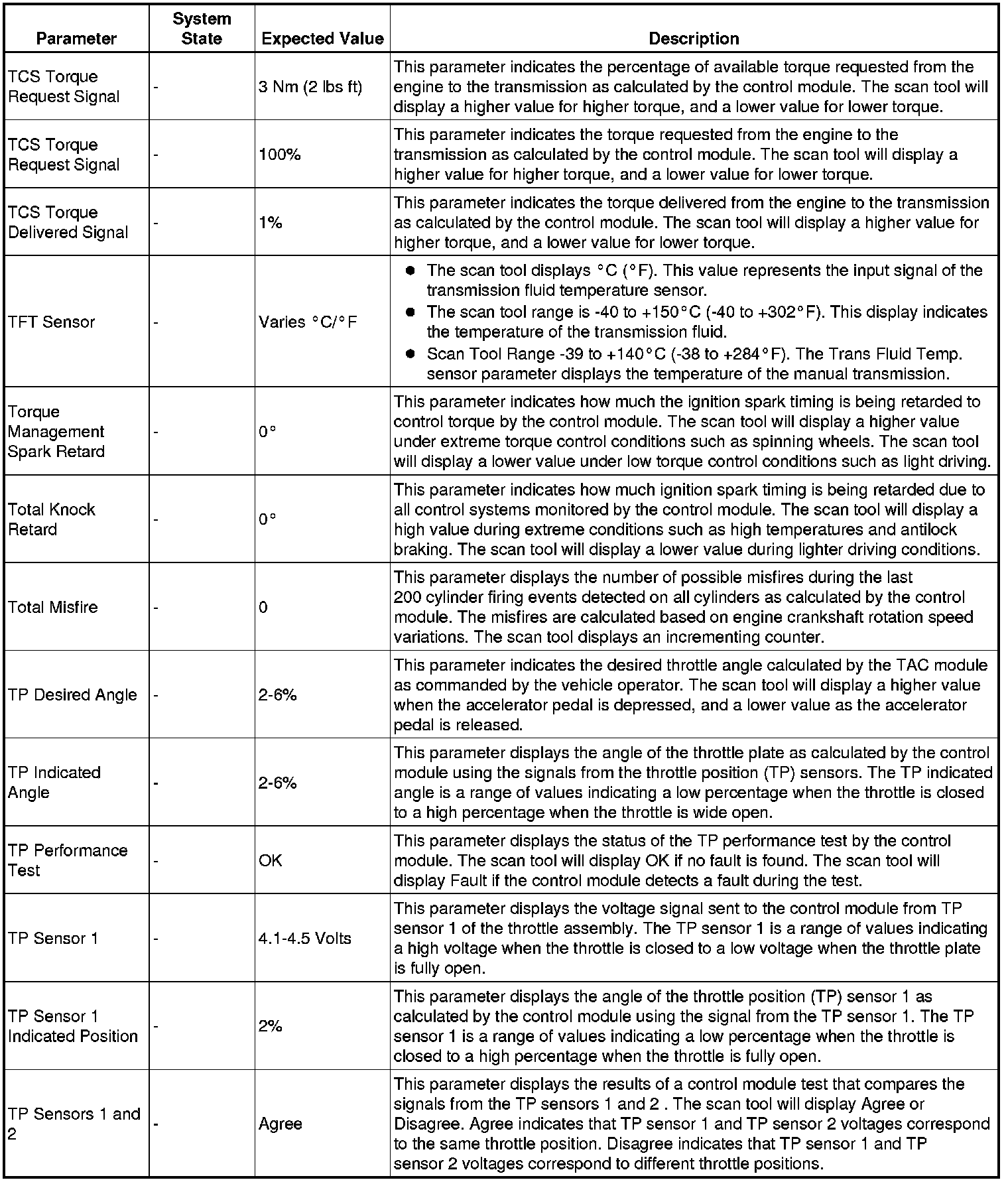 Only the parameters listed below are referenced in this service manual for use in diagnosis.