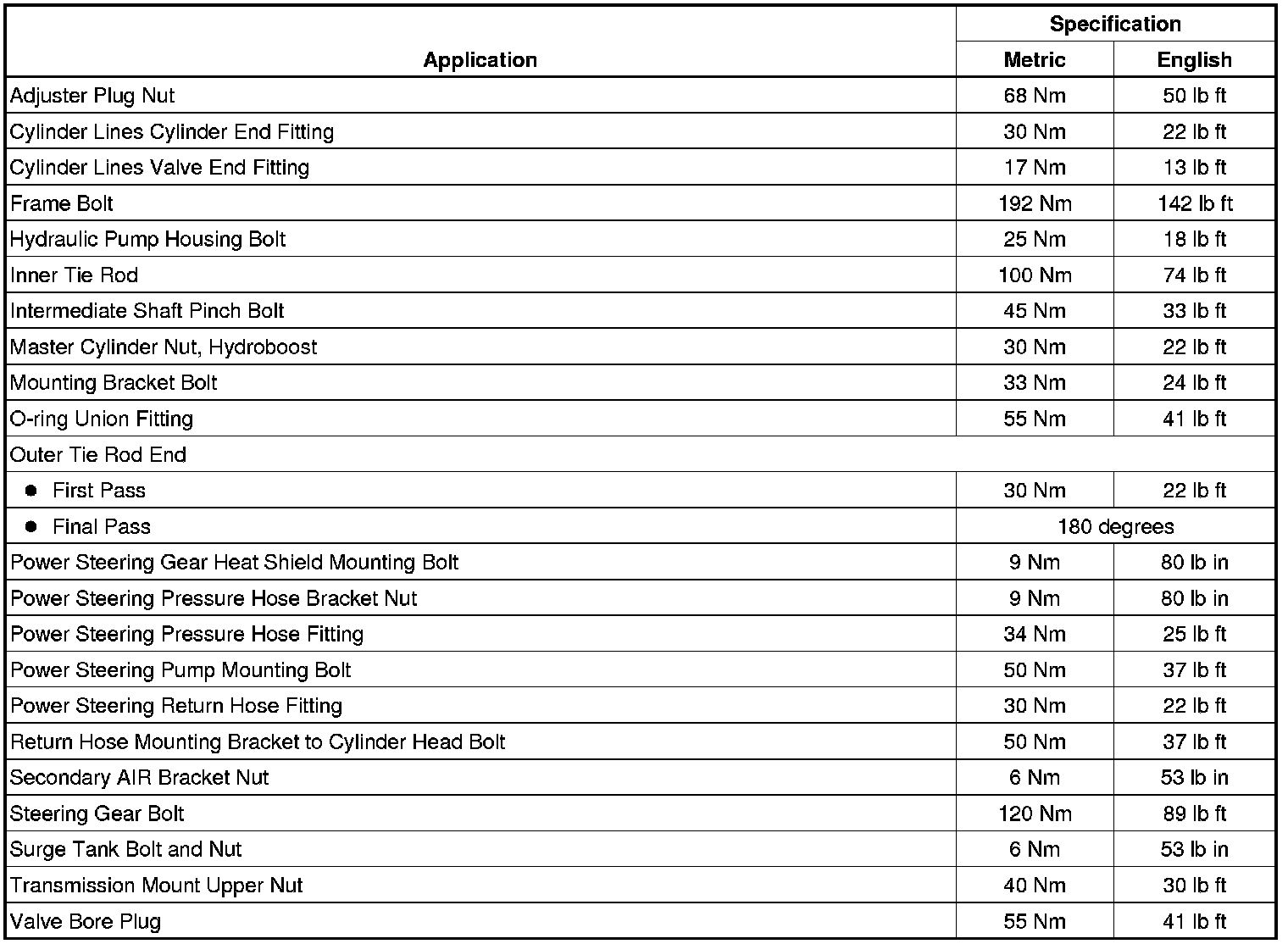 Fastener Tightening Specifications