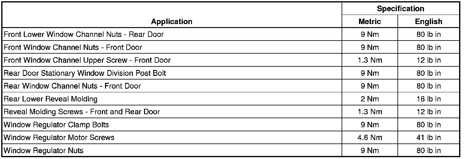 Fastener Tightening Specifications