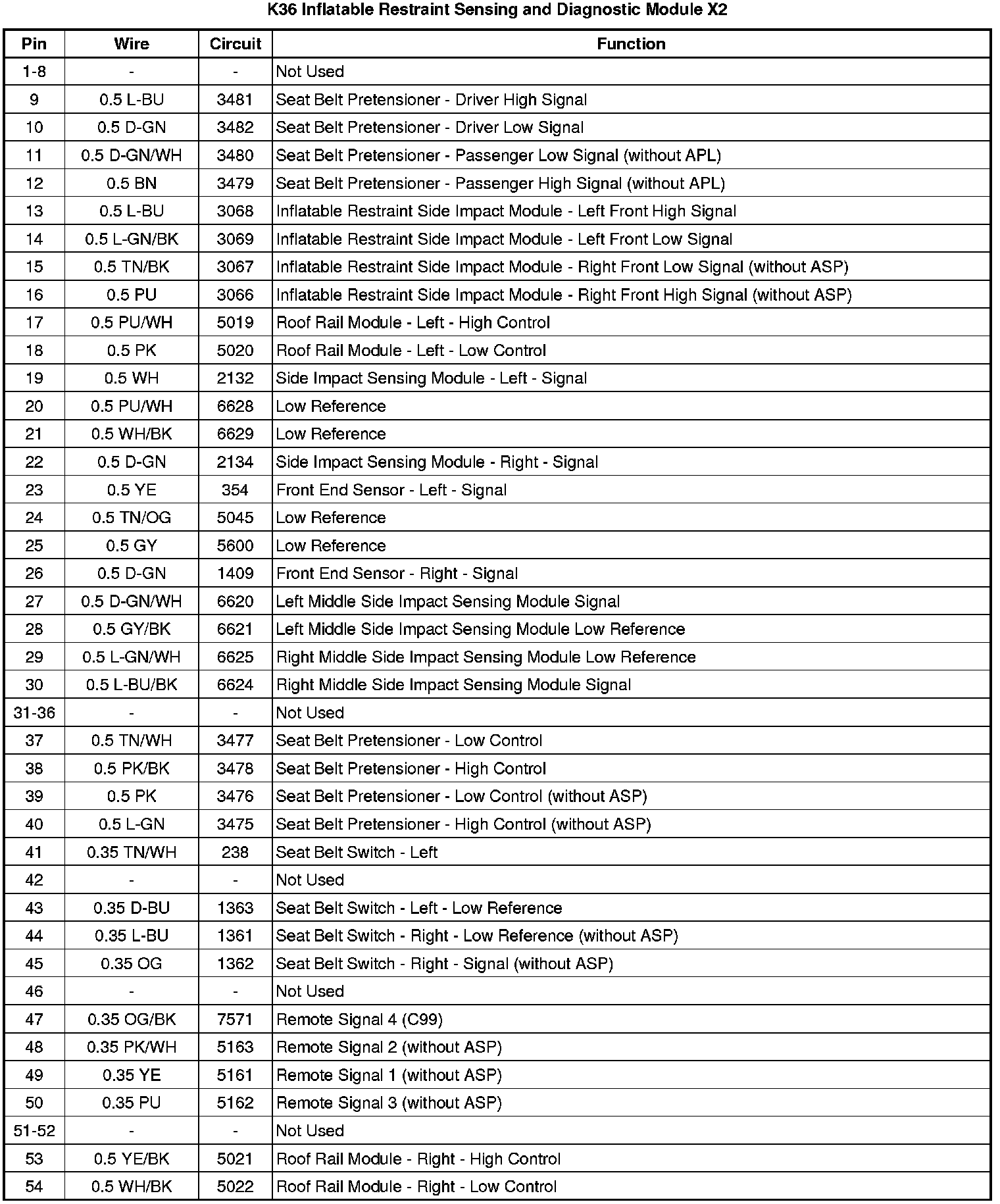 K36 Inflatable Restraint Sensing and Diagnostic Module X1 (without C99)