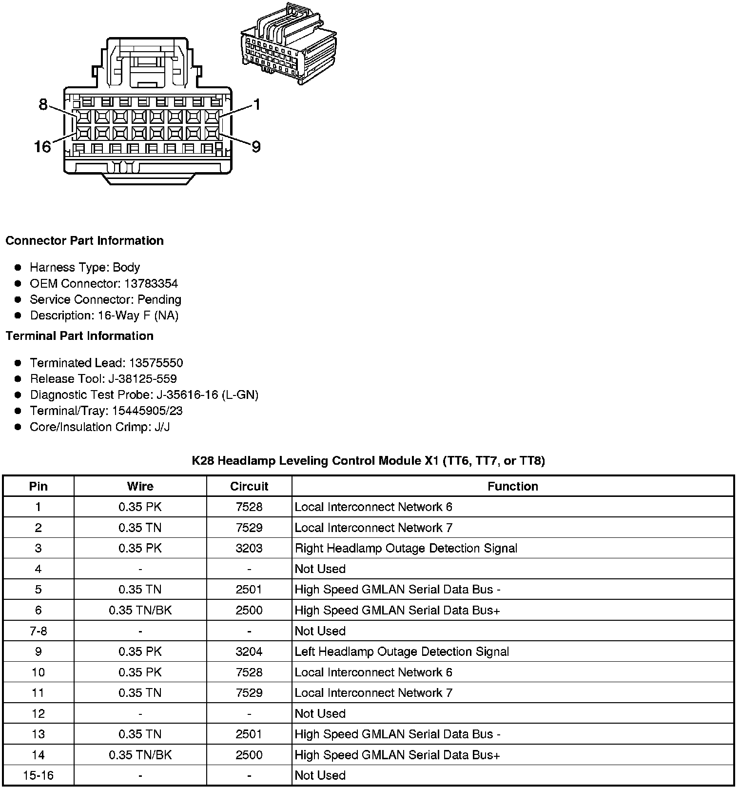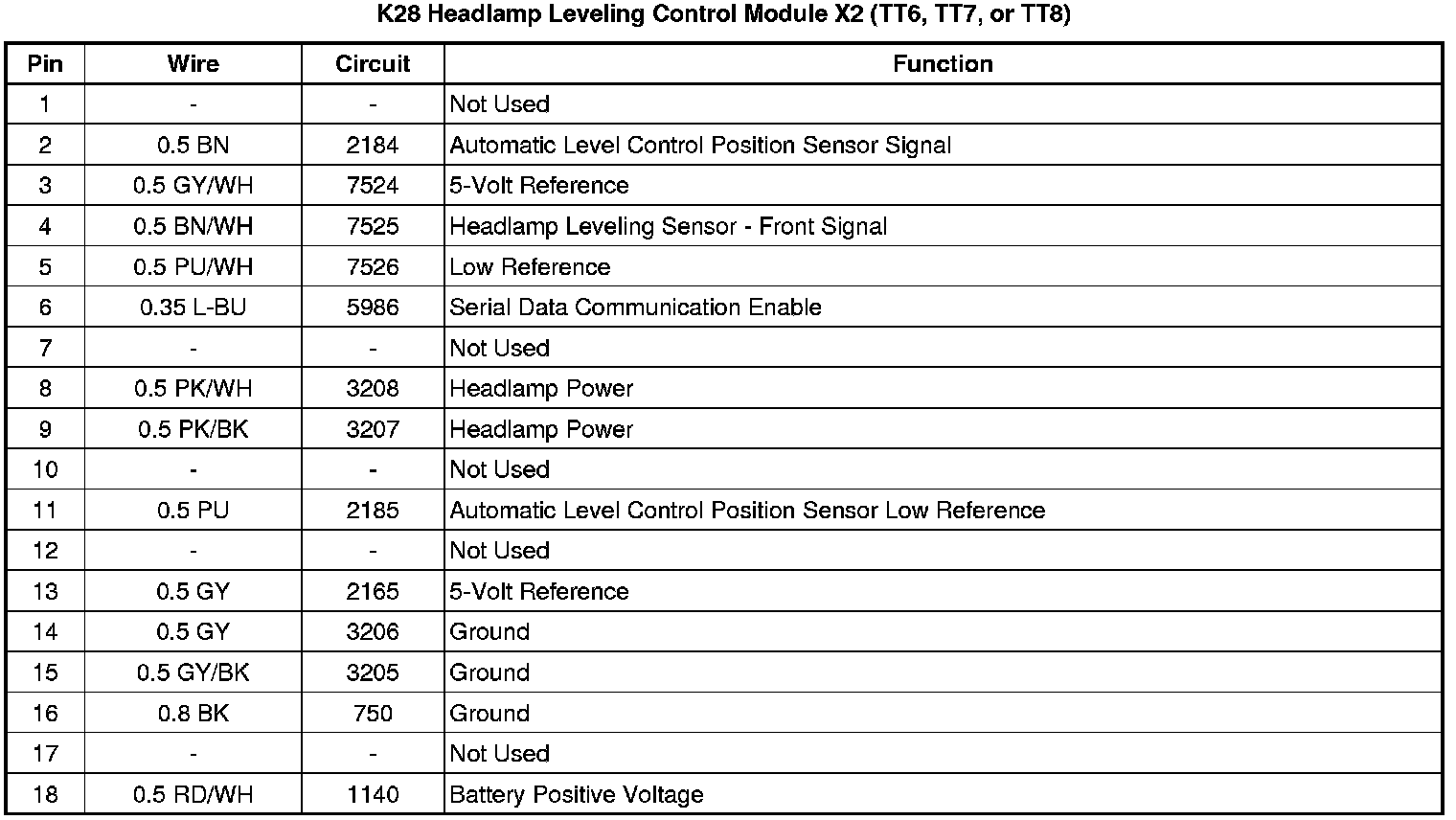 K28 Headlamp Leveling Control Module X1 (TT6, TT7, or TT8)