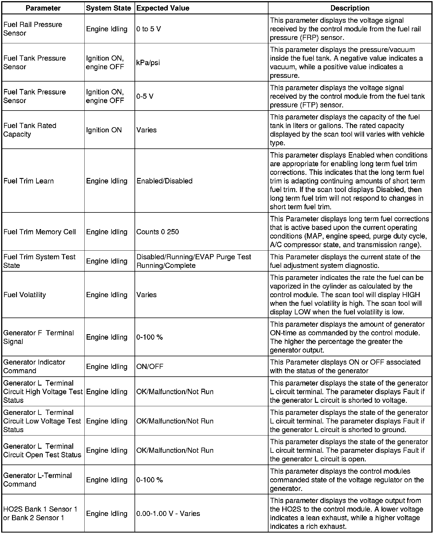 The scan tool values from a properly running engine may be used for comparison with the engine you are diagnosing. The Engine Scan Tool Data List represents values that would be seen on a normally running engine.