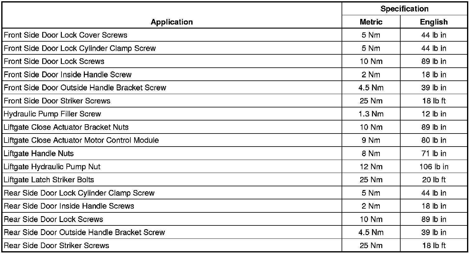 Fastener Tightening Specifications