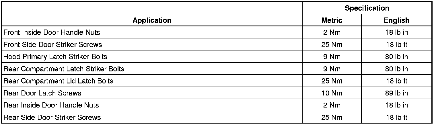 Fastener Tightening Specifications