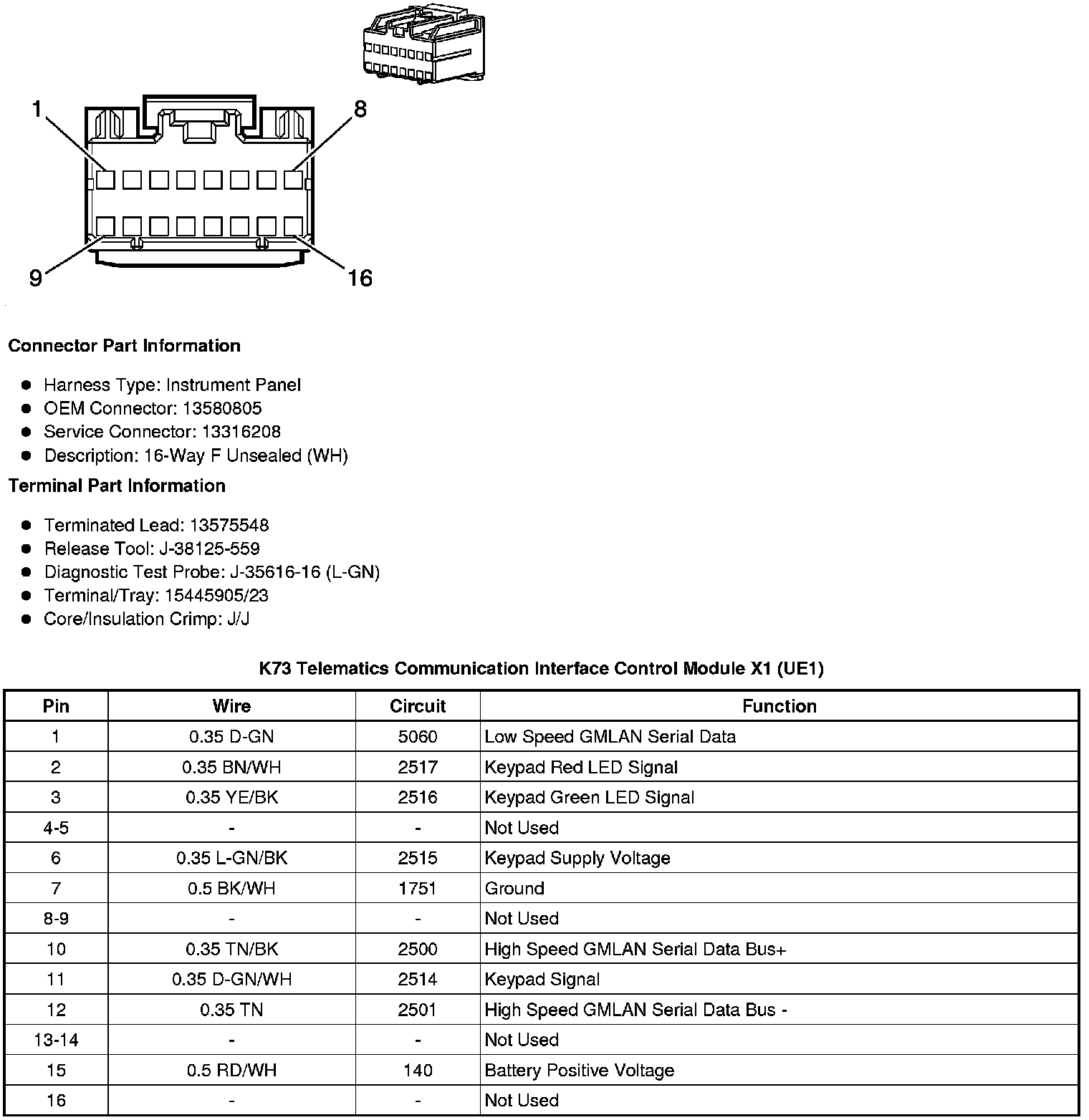 K73 Telematics Communication Interface Control Module X1 (UE1)