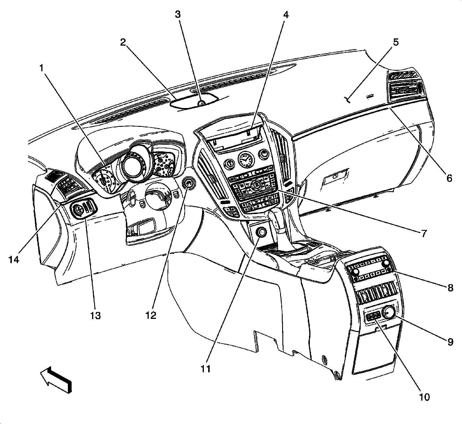 Home >> Cadillac >> 2012 >> SRX FWD V6-3.6L >> Repair and Diagnosis >> Locations >> Component Locations >> Instrument Panel/Center Console Component Views >> Instrument Panel and Console Components