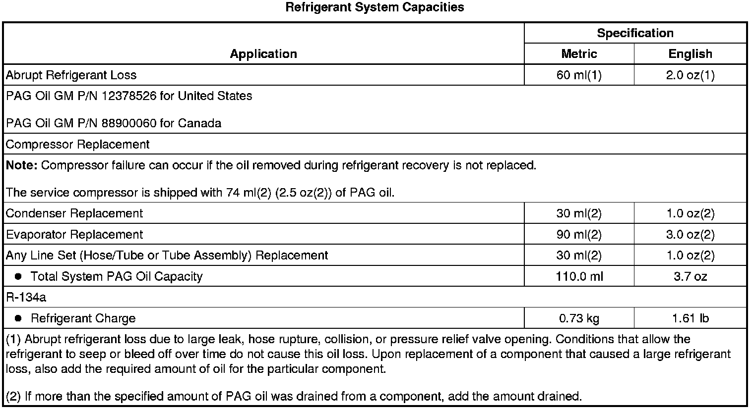 Capacity Specifications