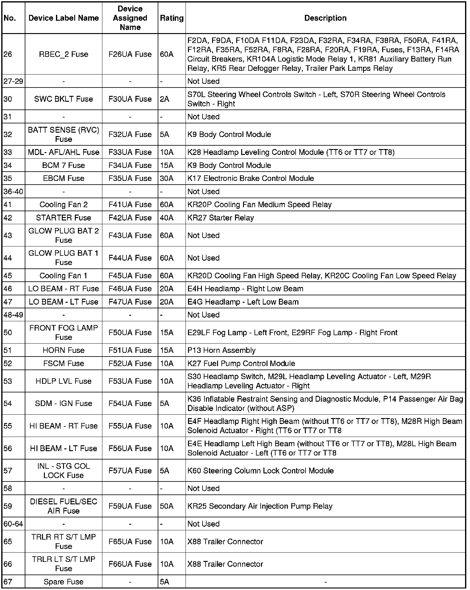 X50A Fuse Block - Underhood Label