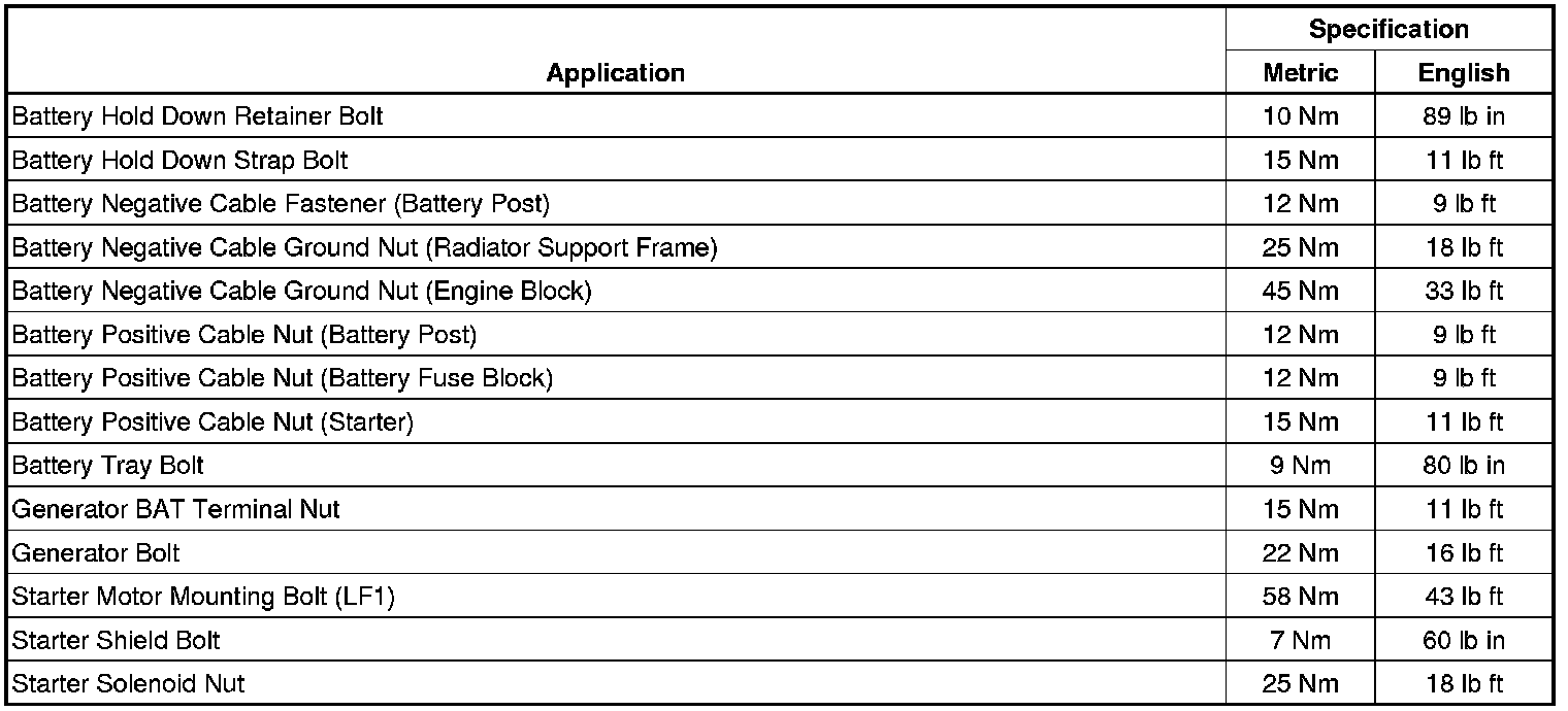 Starting and Charging: Specifications