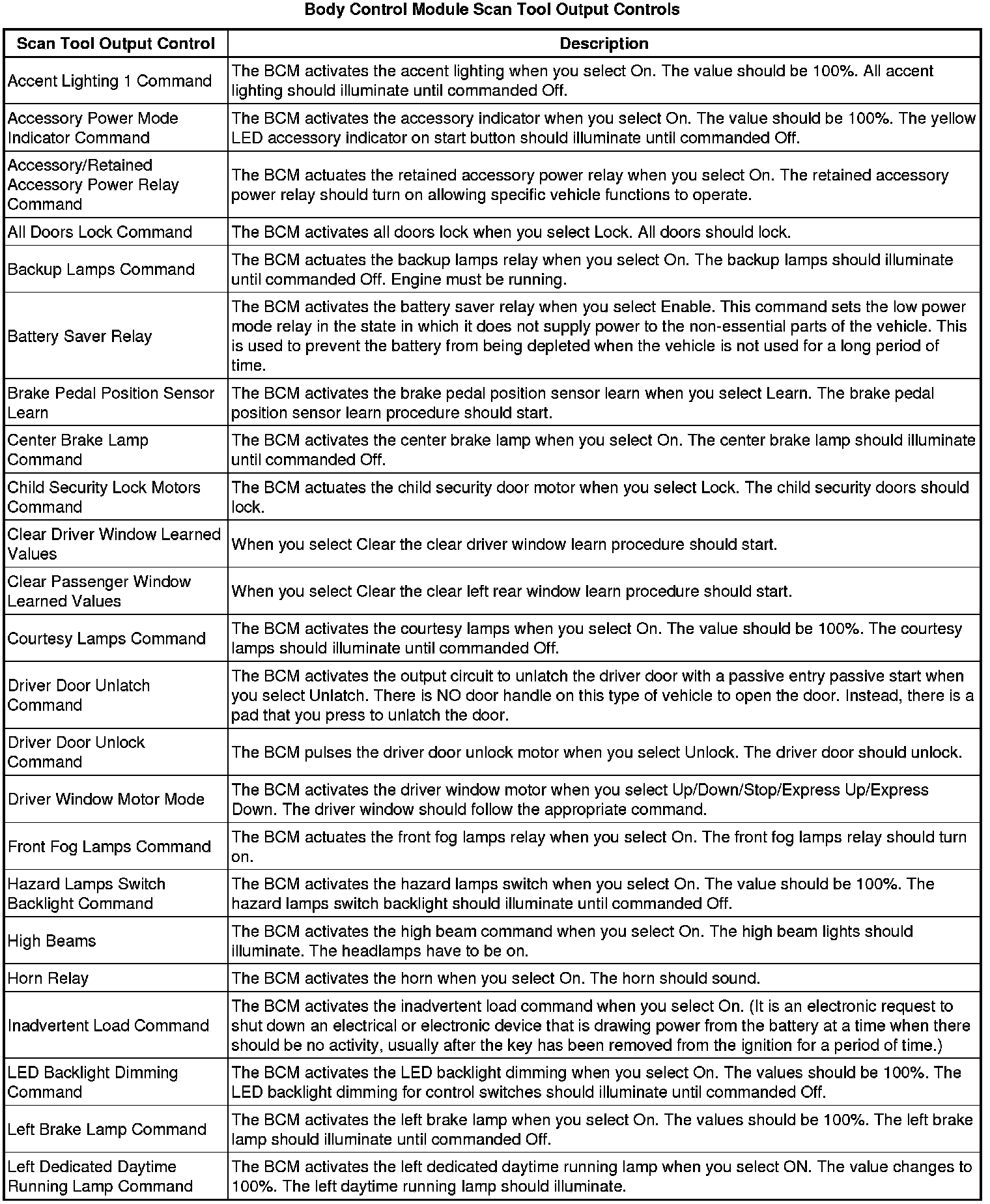 Body Control Systems: Testing and Inspection