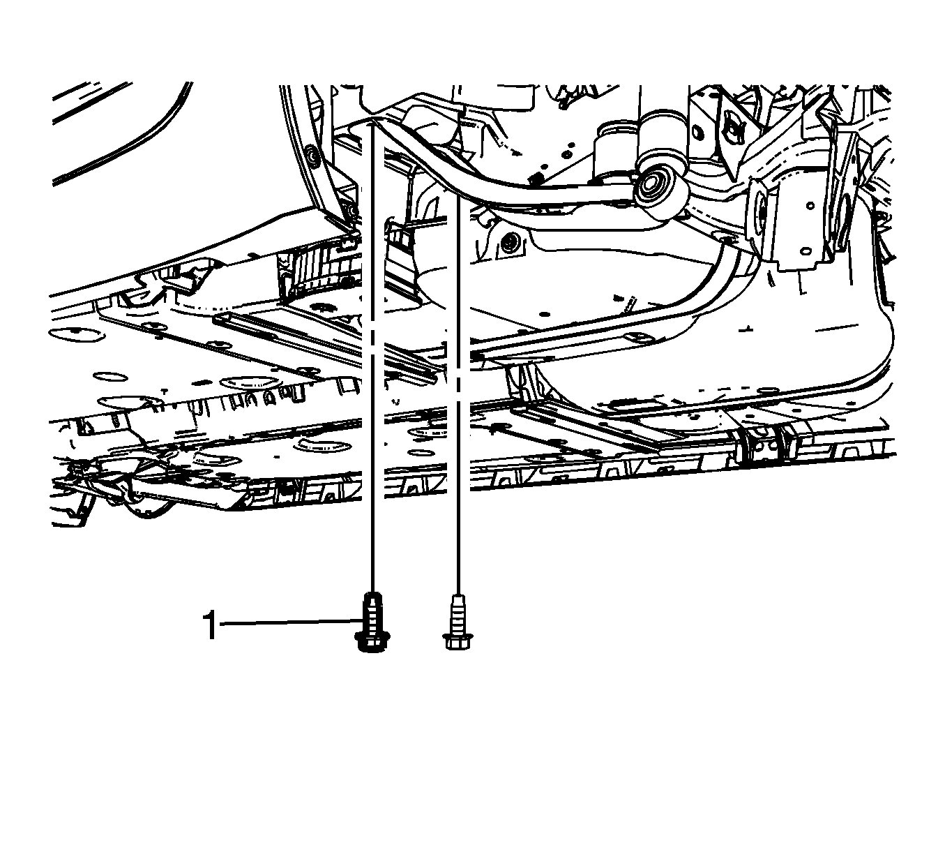 25.Remove the rear suspension lower control arm front bolt (1).