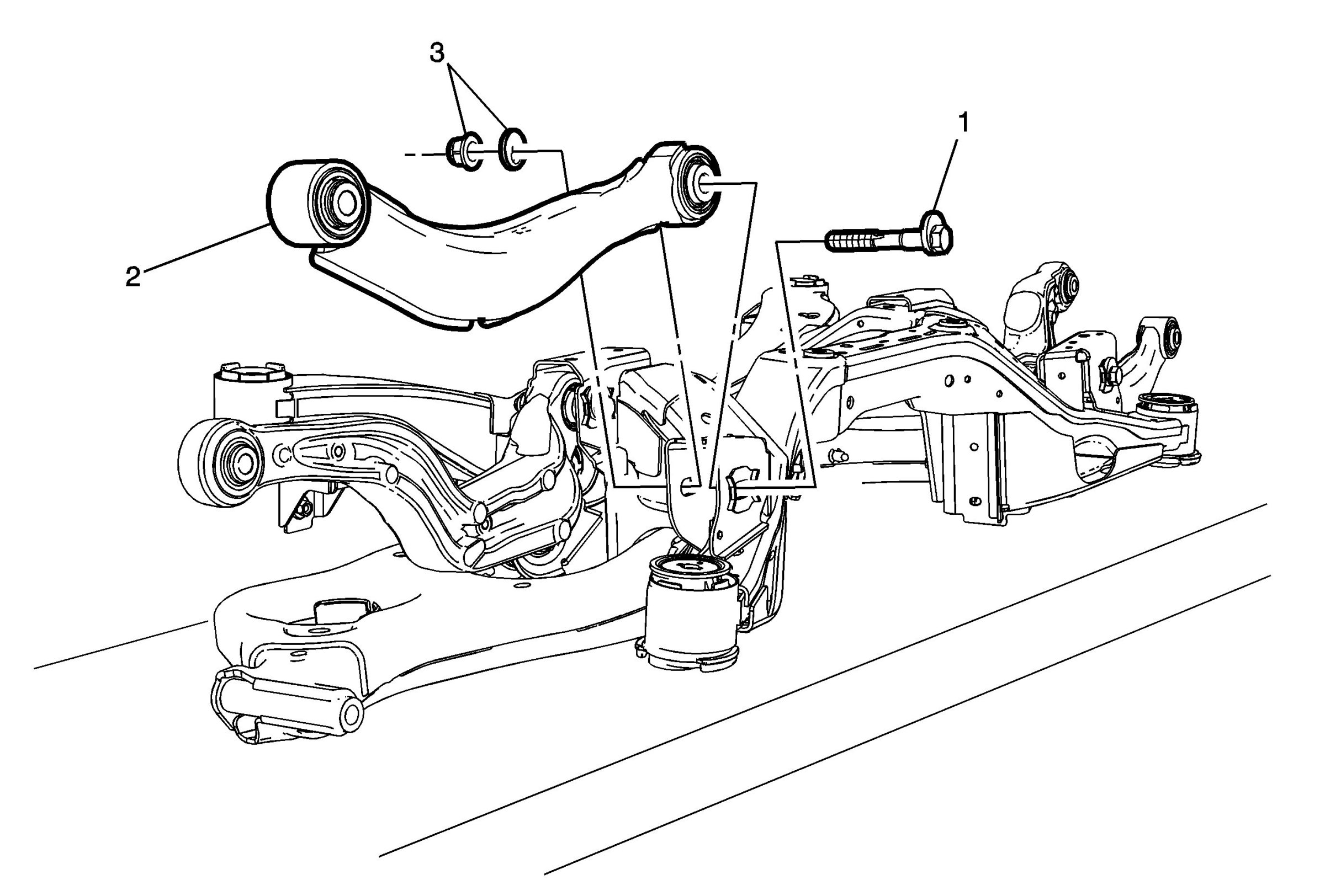 28.Remove the rear suspension lower control arm (3).