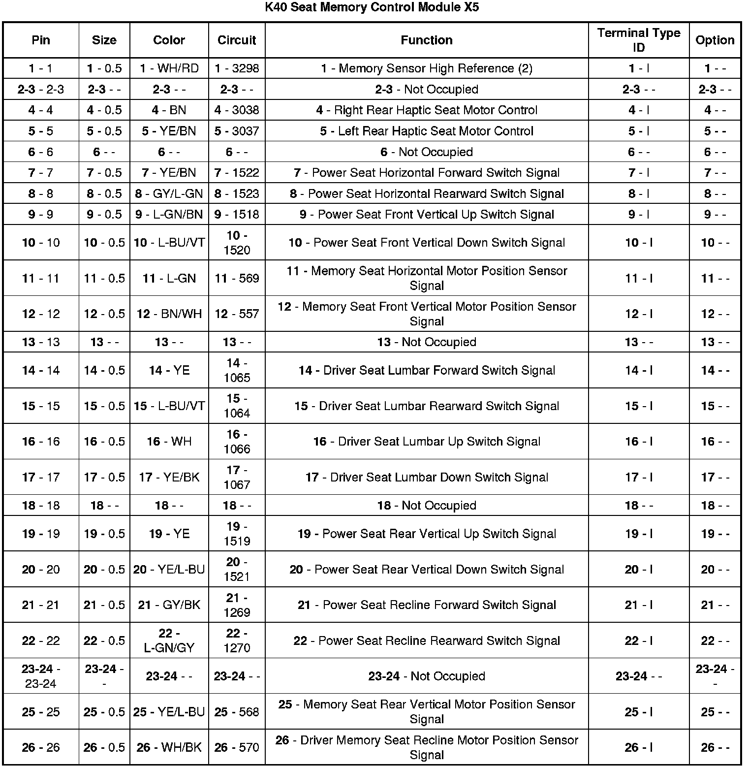 K40 Seat Memory