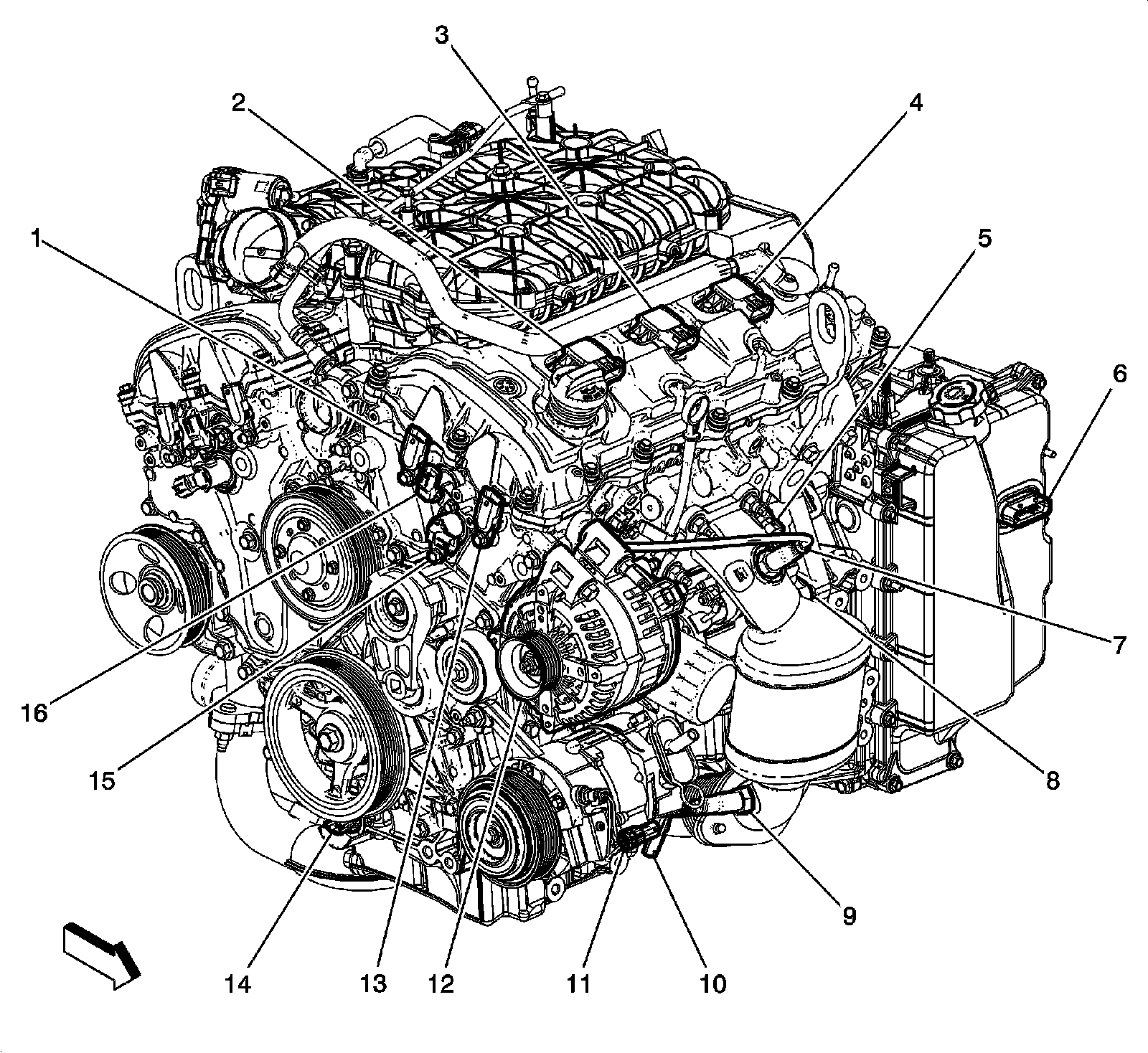 Front and Right Side of Engine Components (LFX)