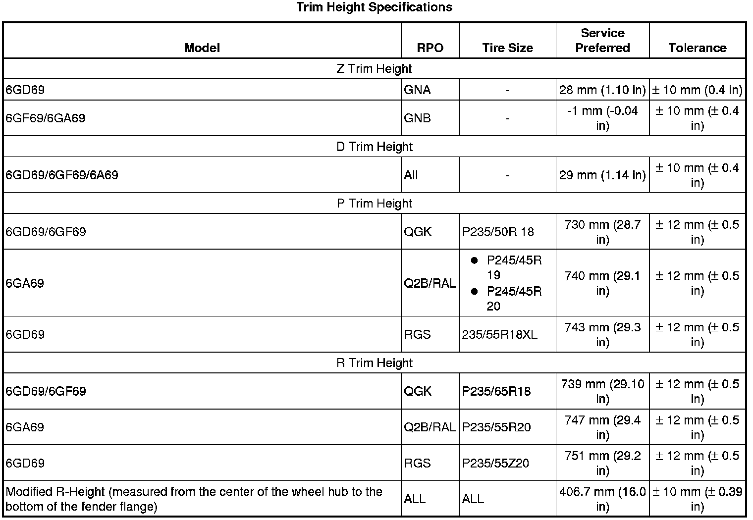 Trim Height Specifications