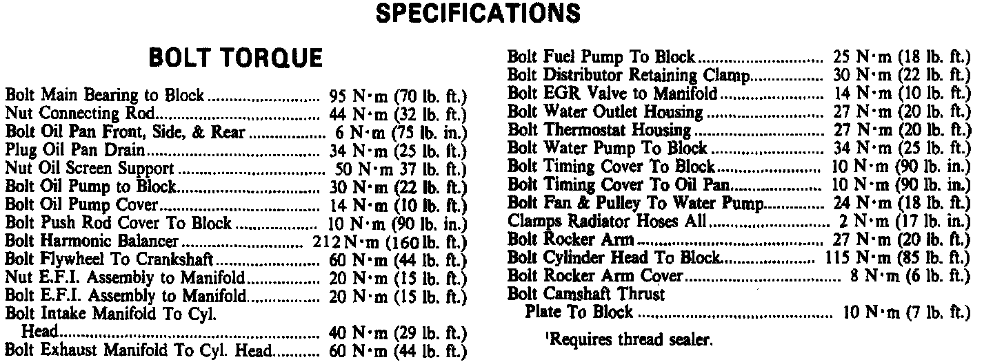 Torque Specifications: