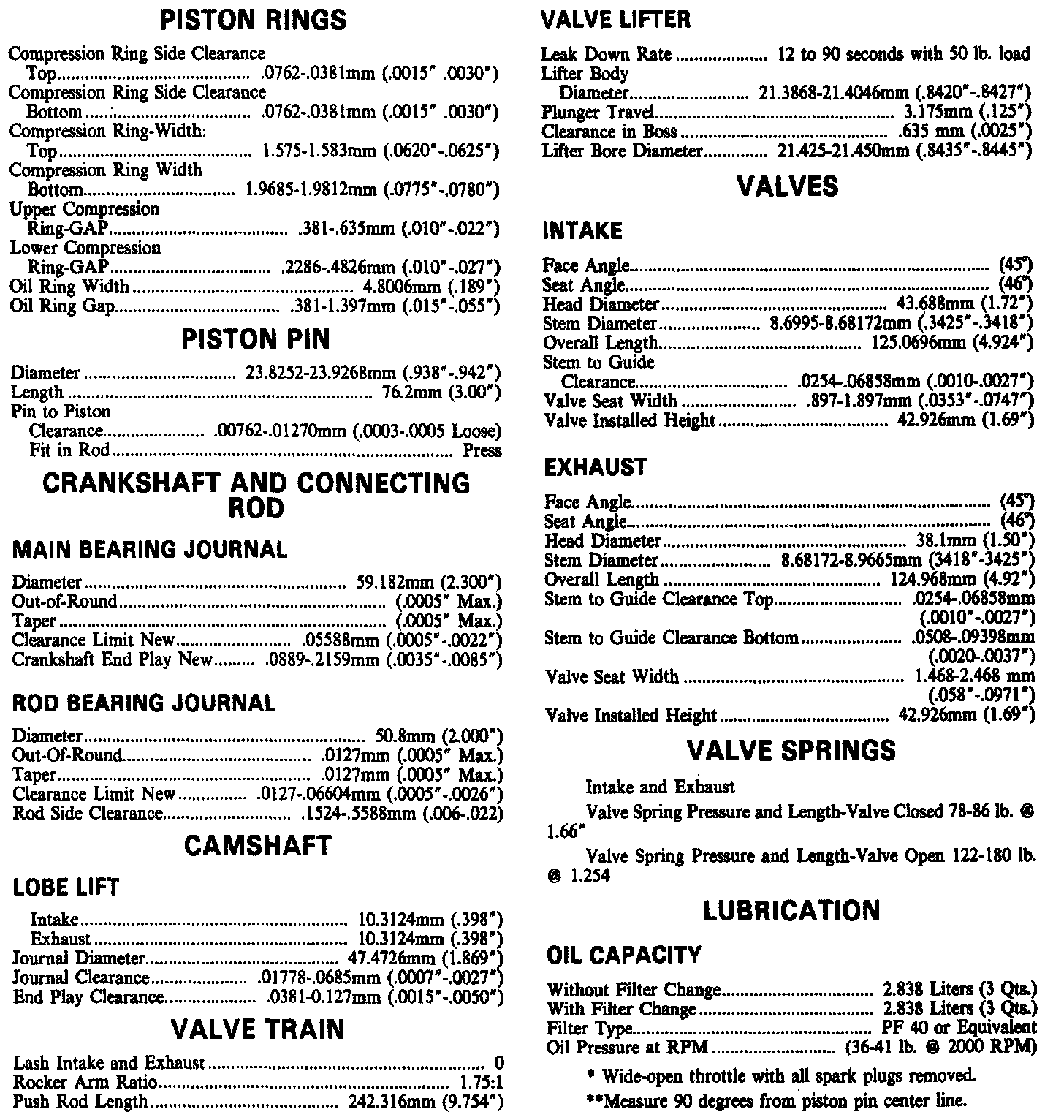Engine Specifications: