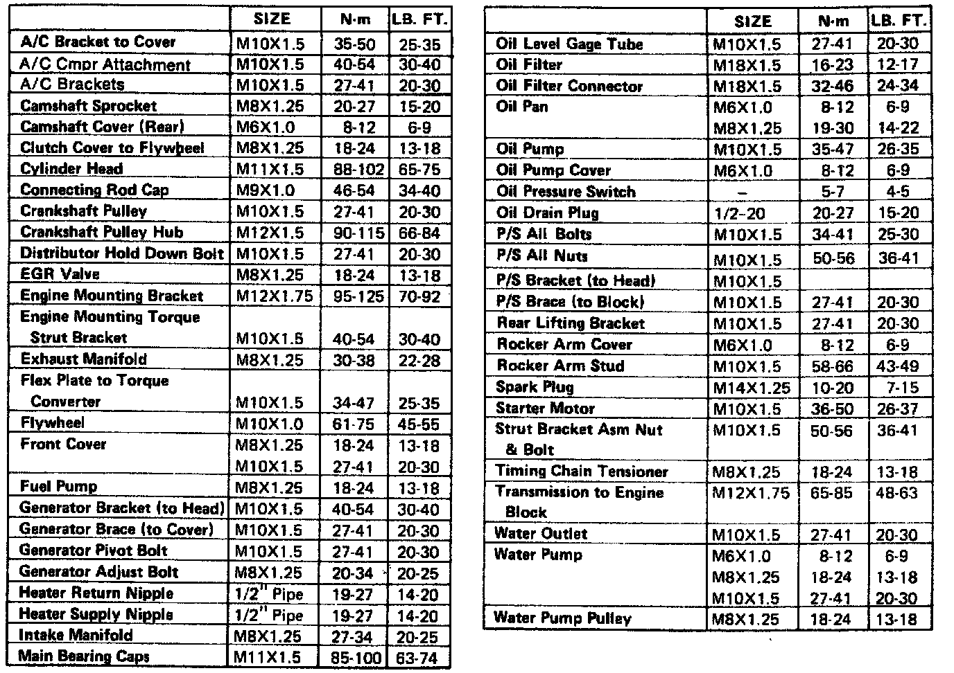 Torque Specifications: