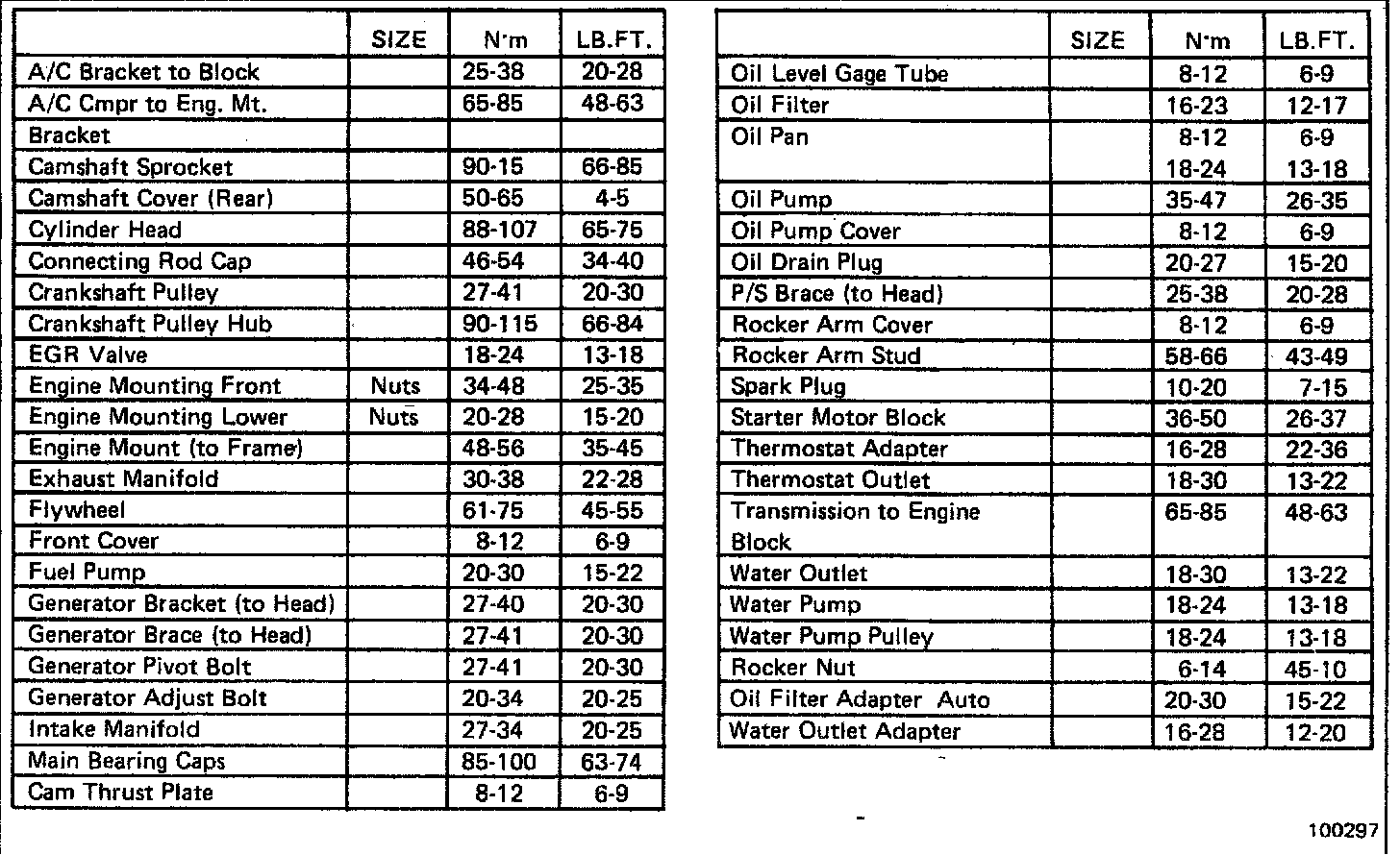 Torque Specifications: