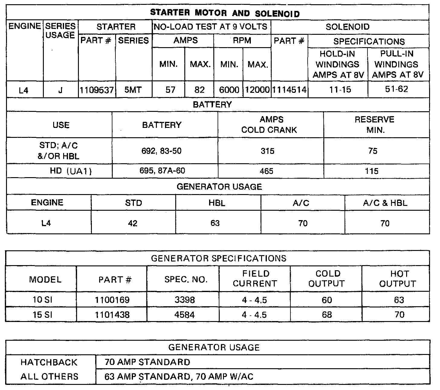 Starting and Charging: Specifications