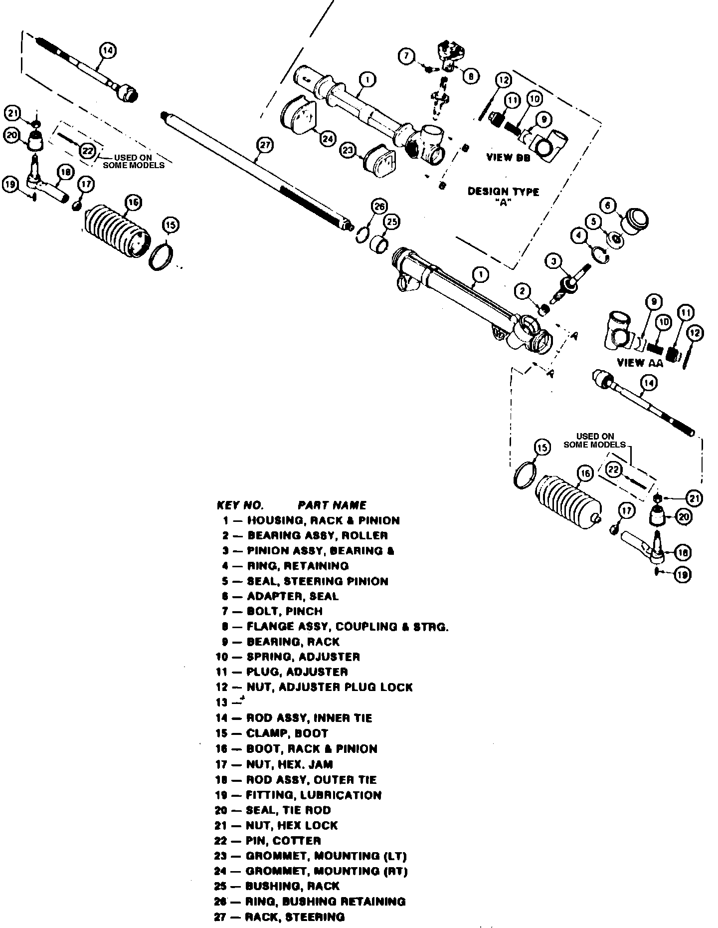 Fig. 1 Exploded view of Saginaw rack & pinion steering gear. Chevette, Citation, Omega, Phoenix, Skylark & 1000: