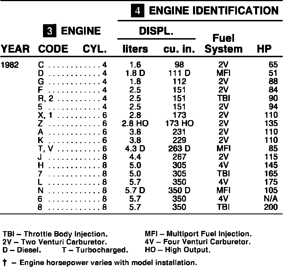 Home >> Chevrolet >> 1982 >> Chevette L4-98 1.6L >> Repair and Diagnosis >> Powertrain Management >> Application and ID >> Engine VIN Code Identification