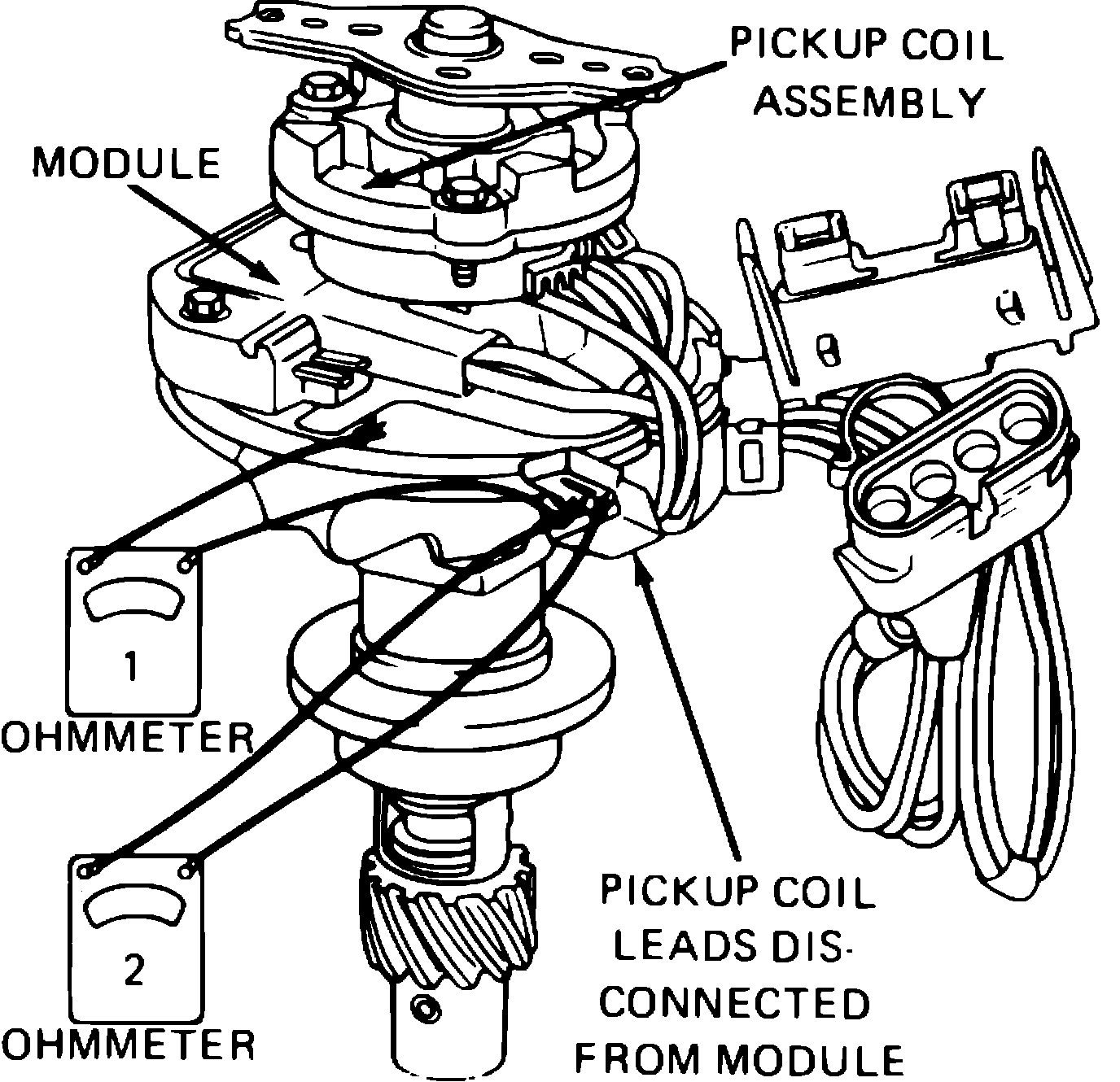1. Remove distributor rotor, then disconnect pickup coil leads from module.