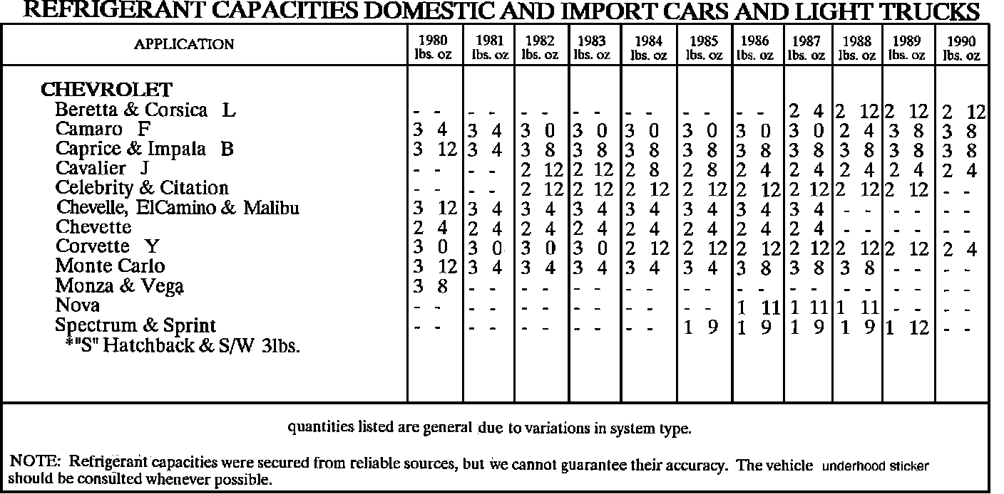 Refrigerant Capacities