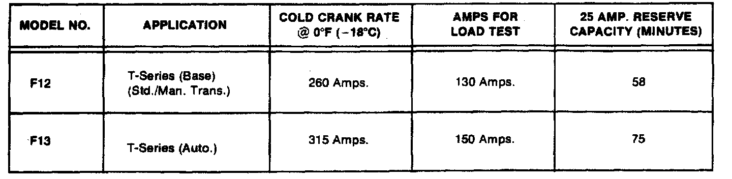 Starting and Charging: Specifications