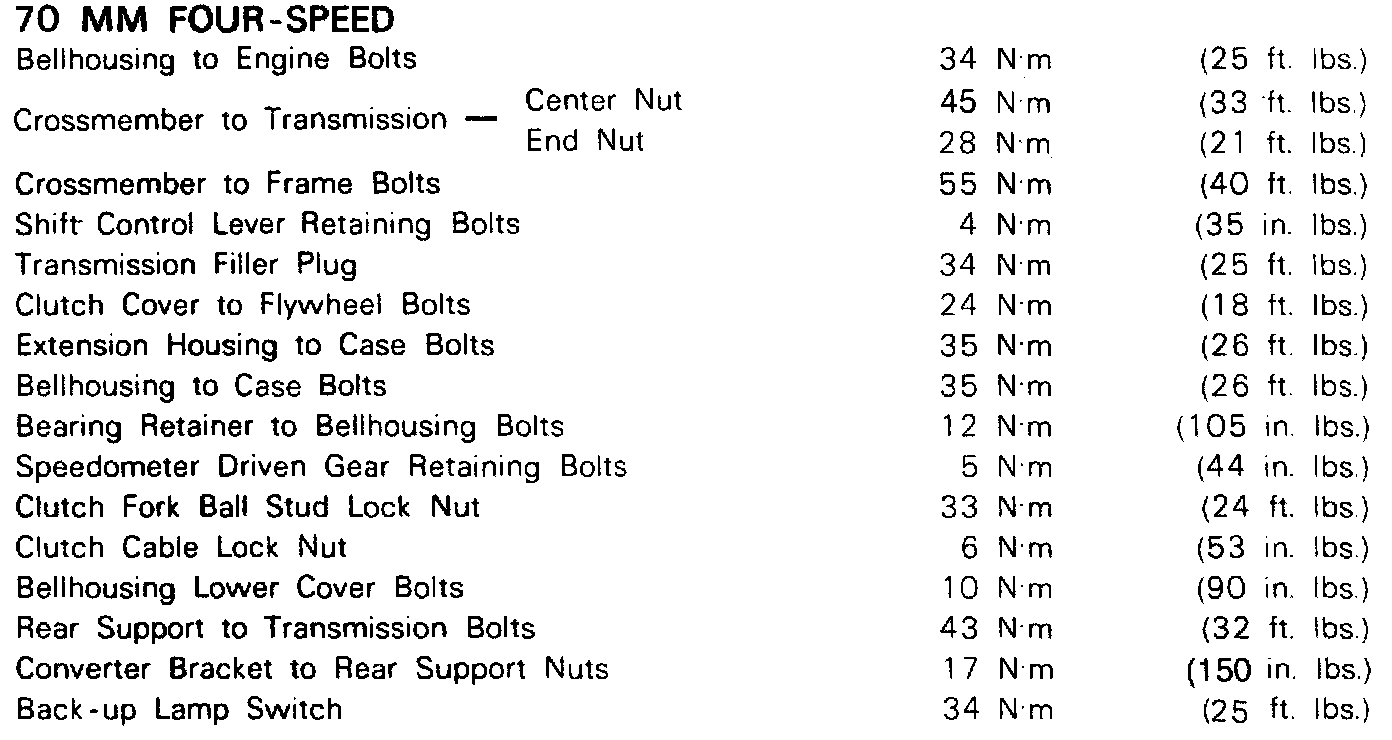 Torque Specifications And Fluid Capacity Chart: