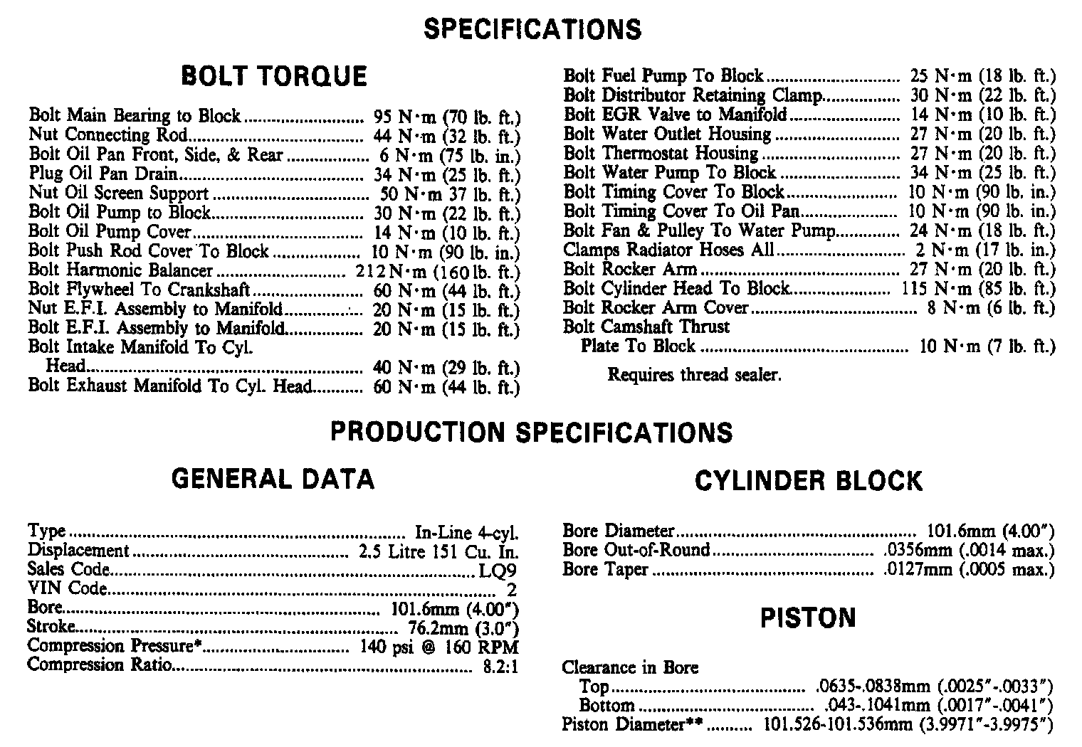 Torque & Engine Specifications: