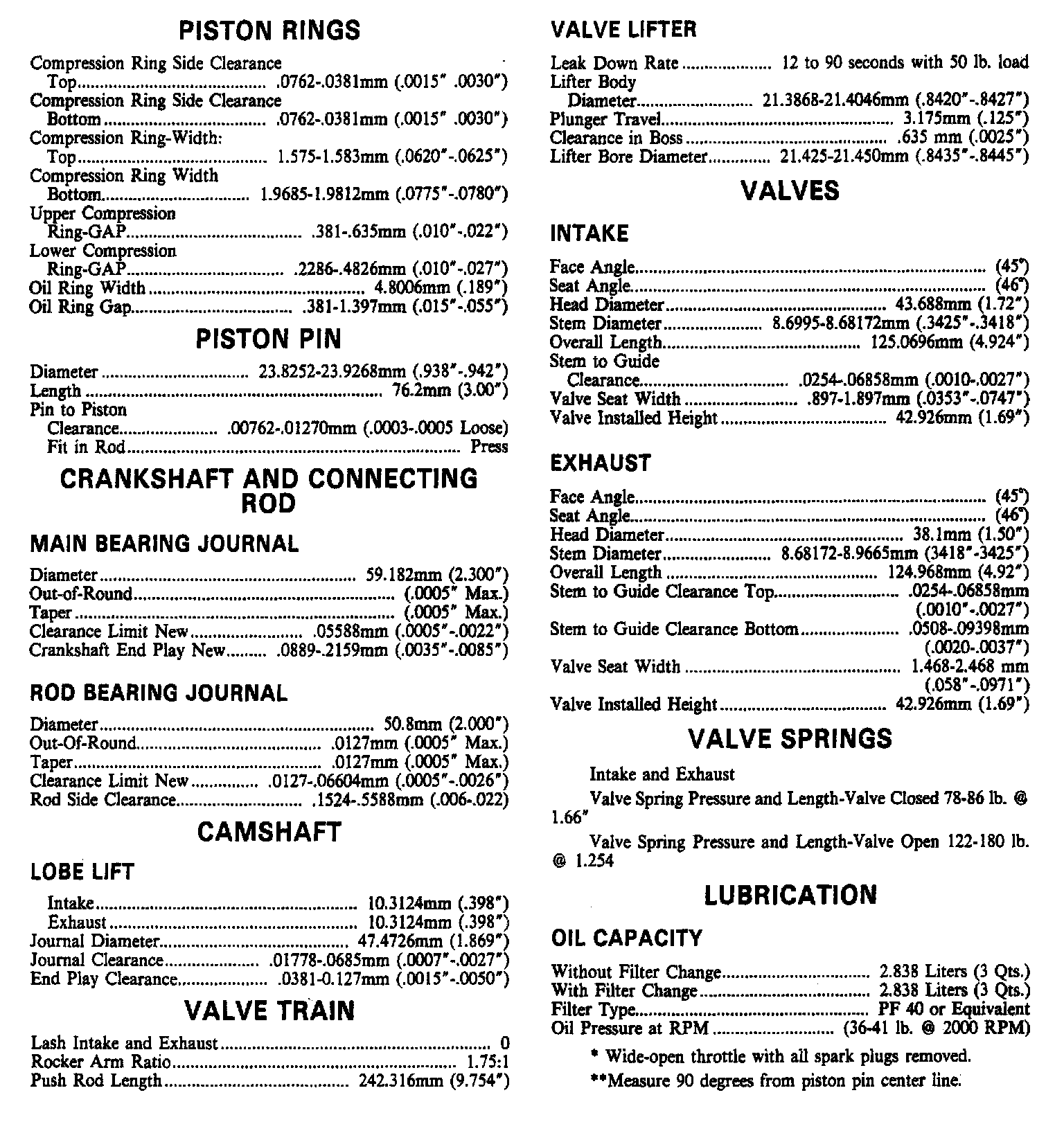 Continued Engine Specifications:
