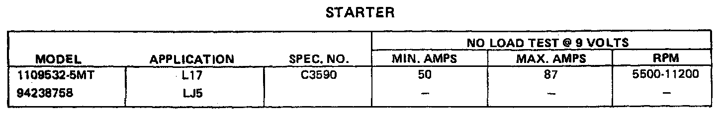 STARTER SPECIFICATIONS