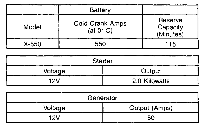 Starting and Charging: Specifications