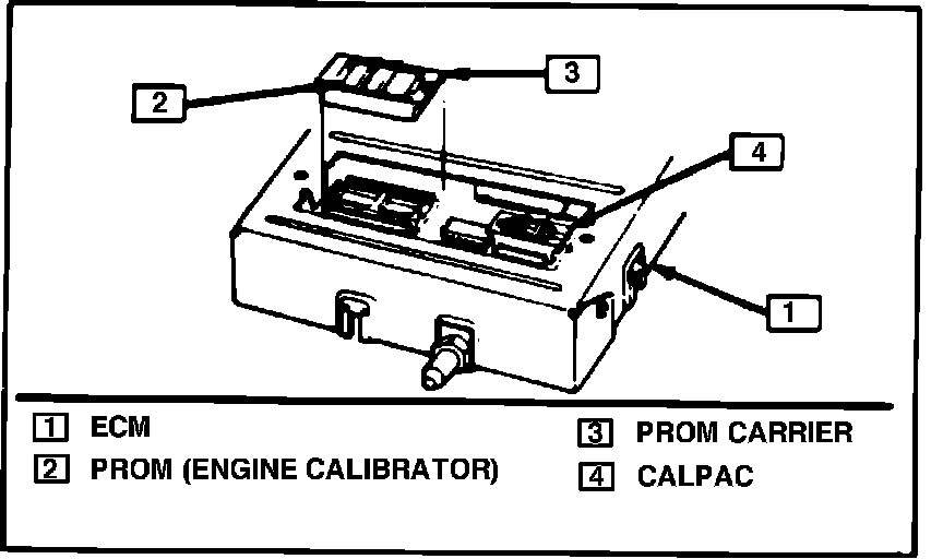 A removable calibration unit (PROM) enables the ECM to recognize and adjust for vehicle variations (vehicle weight, axle ratio, etc.). There are specific ECM/PROM combinations for each specific vehicle which are not interchangeable, Fig. 4.