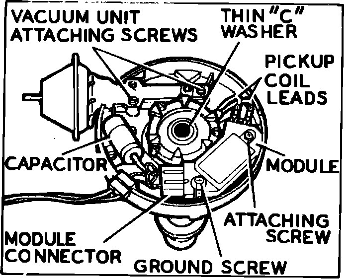 4. Reverse procedure to install. Prior to installation, coat bottom of new module with dielectric grease (furnished with new module) to aid in heat transfer into distributor housing. Failure to apply grease will cause excessive heat at module and premature module failure.
