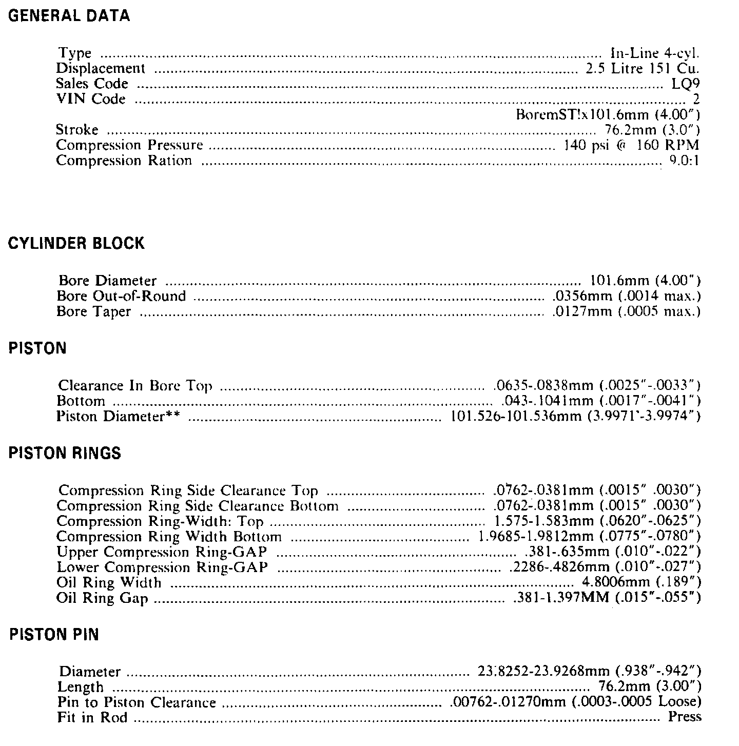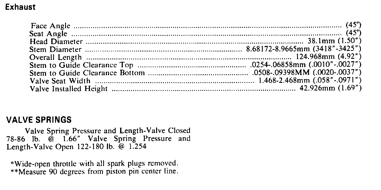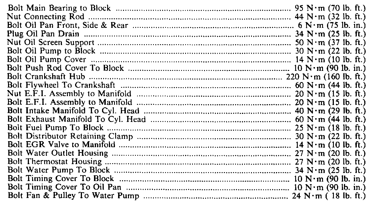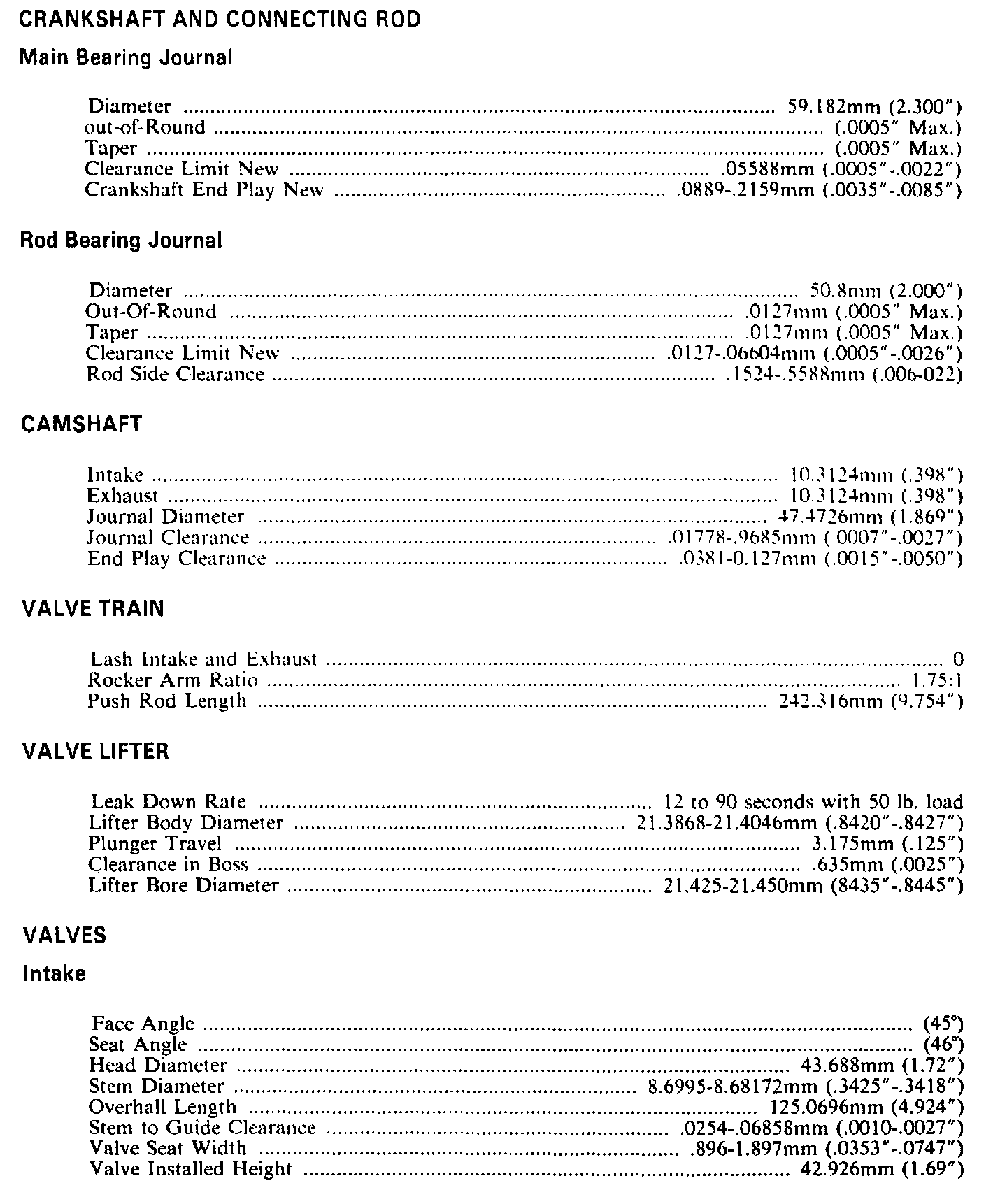 Continued Engine Specifications: