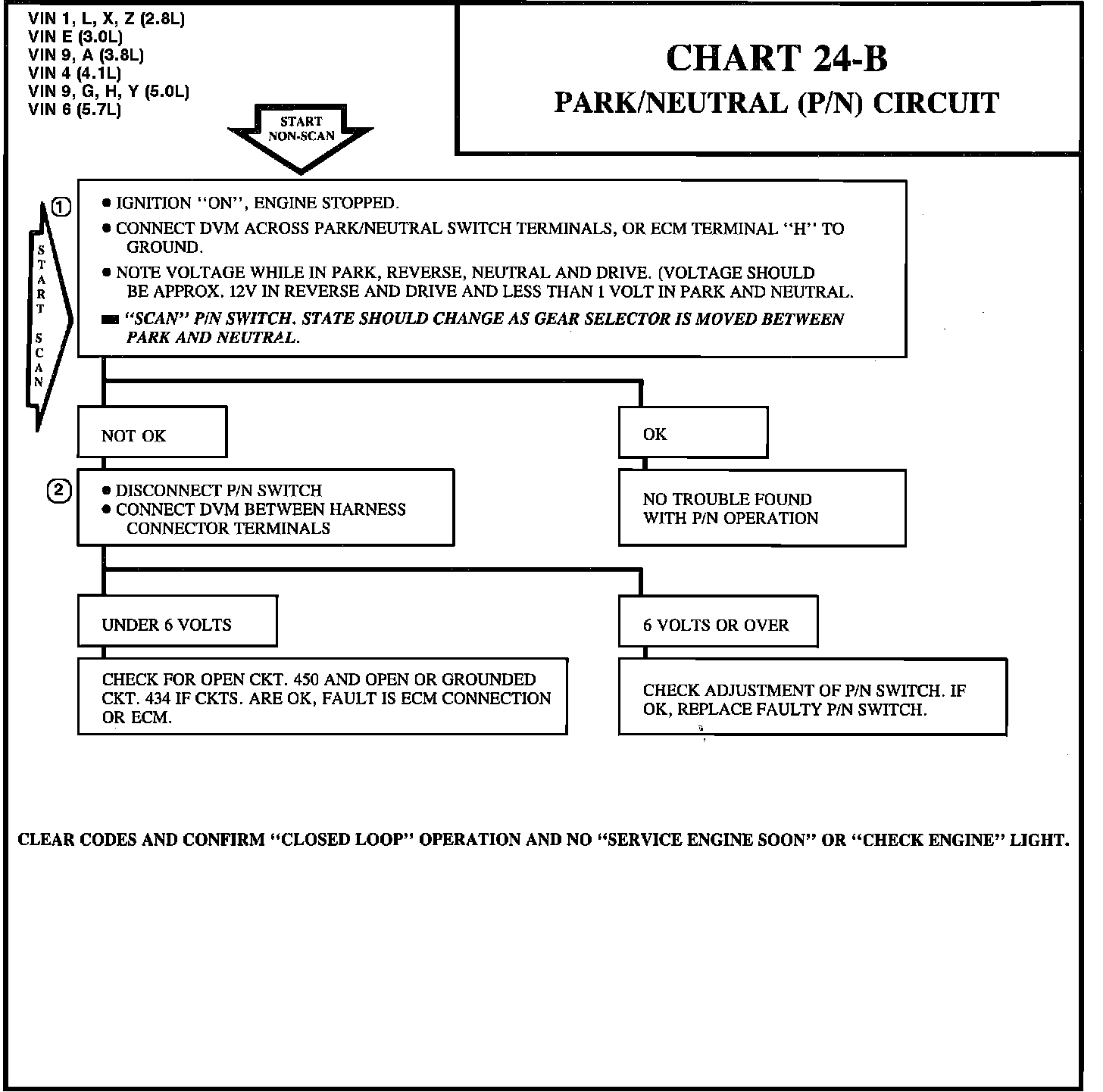 CHART 24B, PARK/NEUTRAL CIRCUIT (P/N)