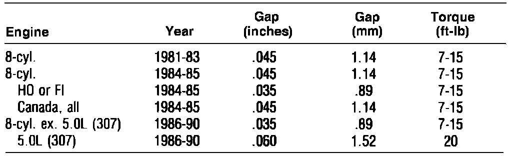 Spark Plug Specifications: