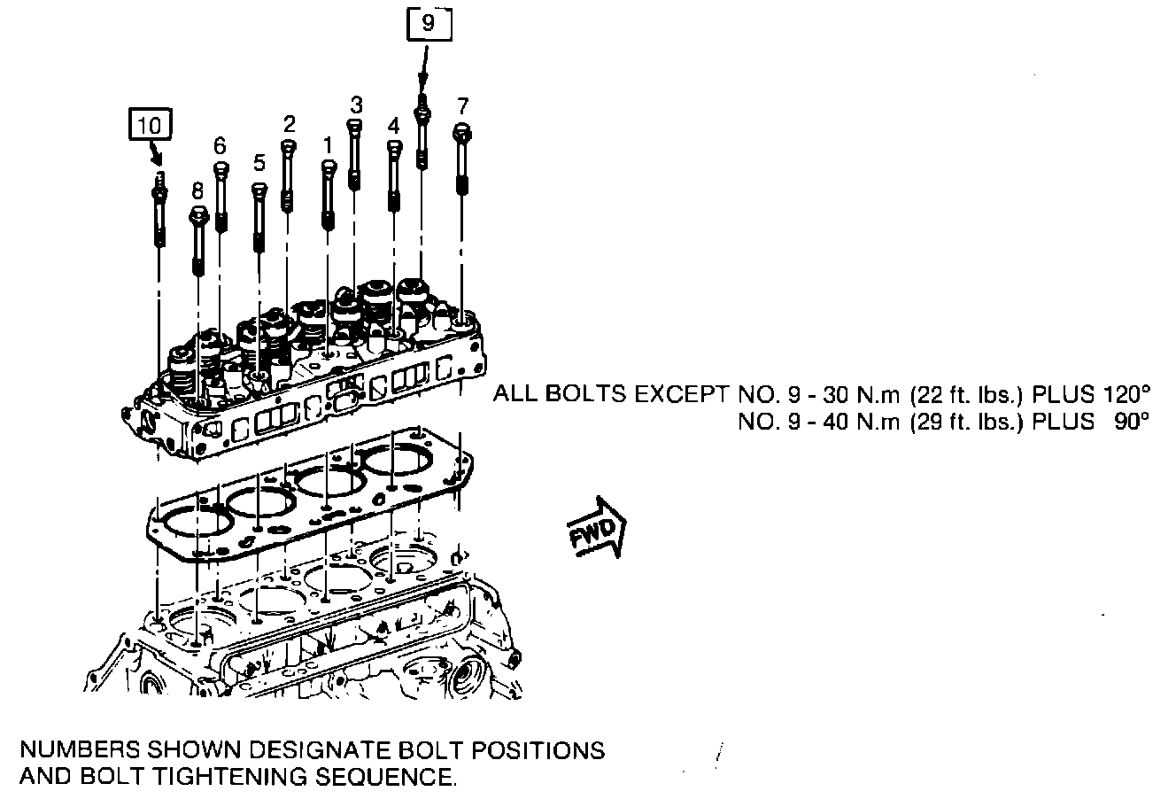 NUMBERS SHOWN DESIGNATE BOLT POSITIONS AND BOLT TIGHTENING SEQUENCE: