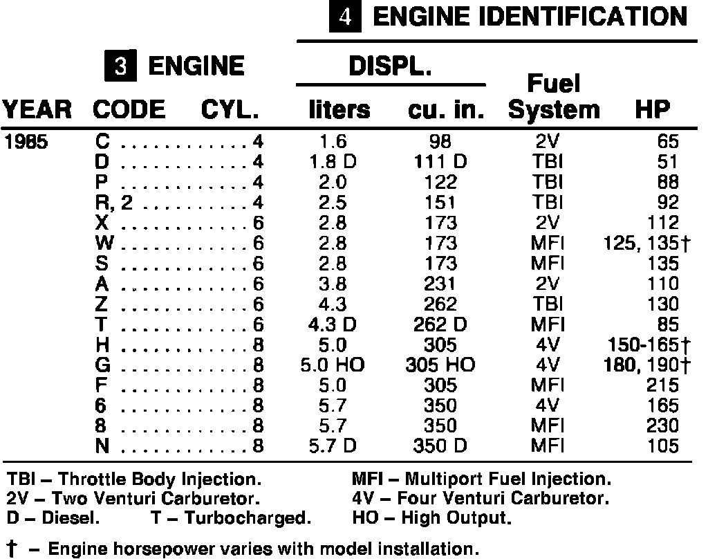 Engine Identification - 1985: