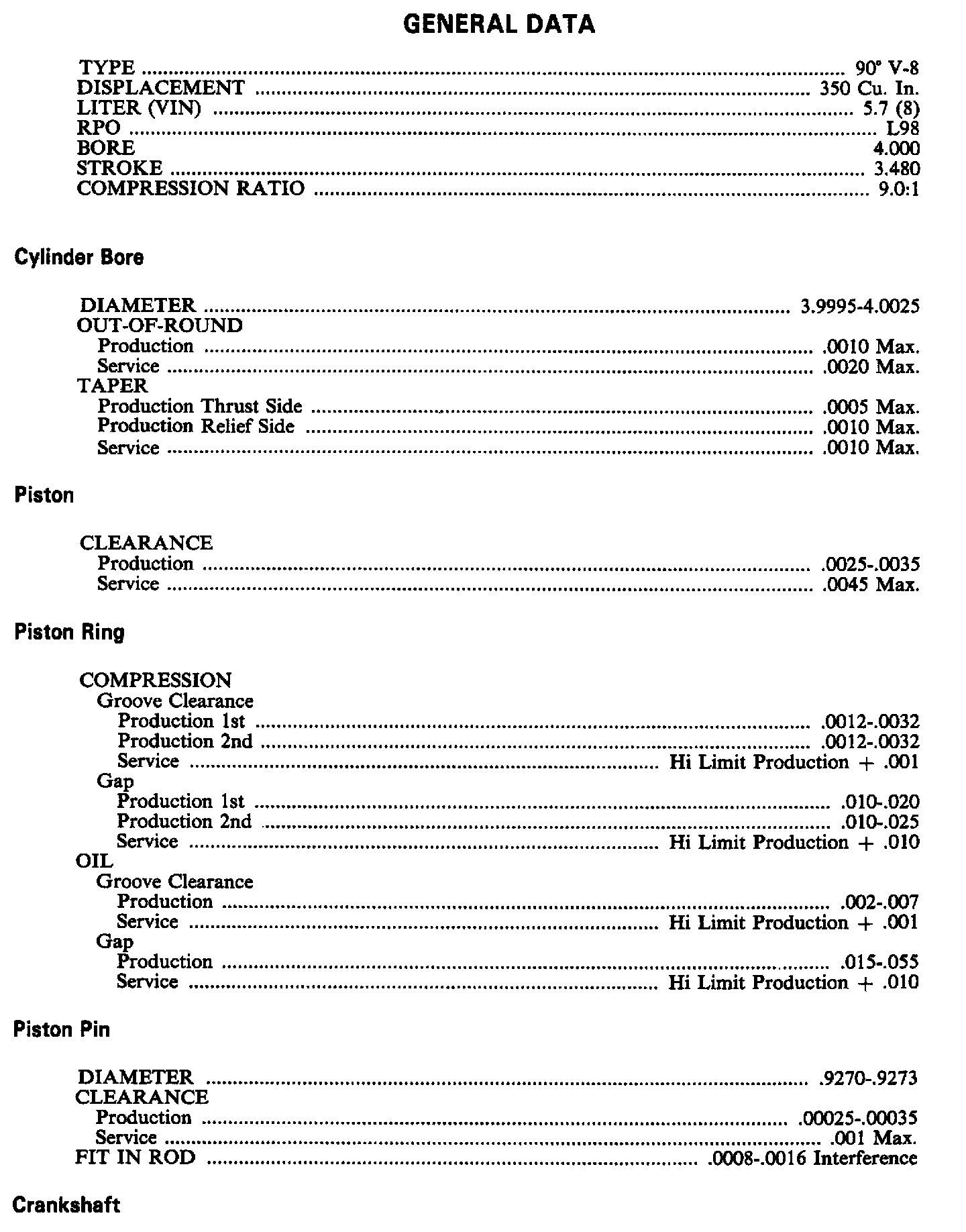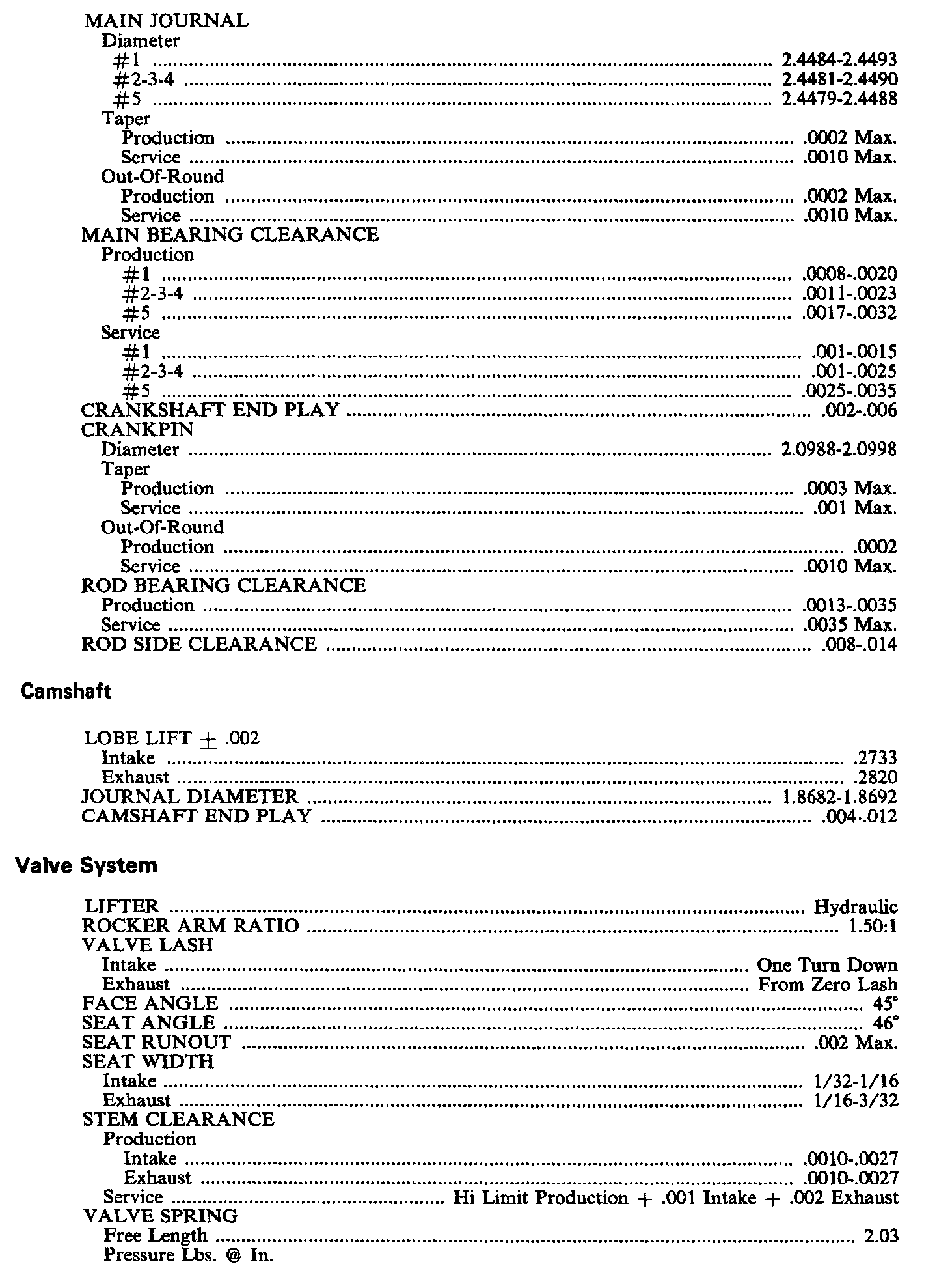 Continued Engine Specifications: