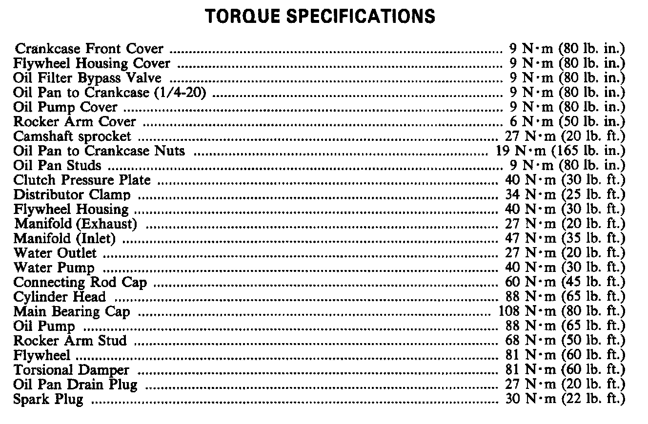 Torque Specifications:
