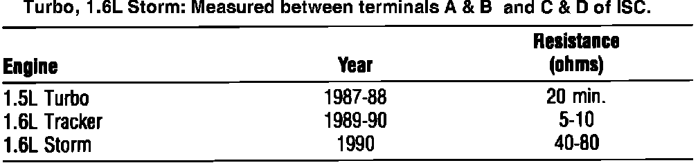 Turbo, 1.6L Storm: Measured between terminals A & B and C & D of